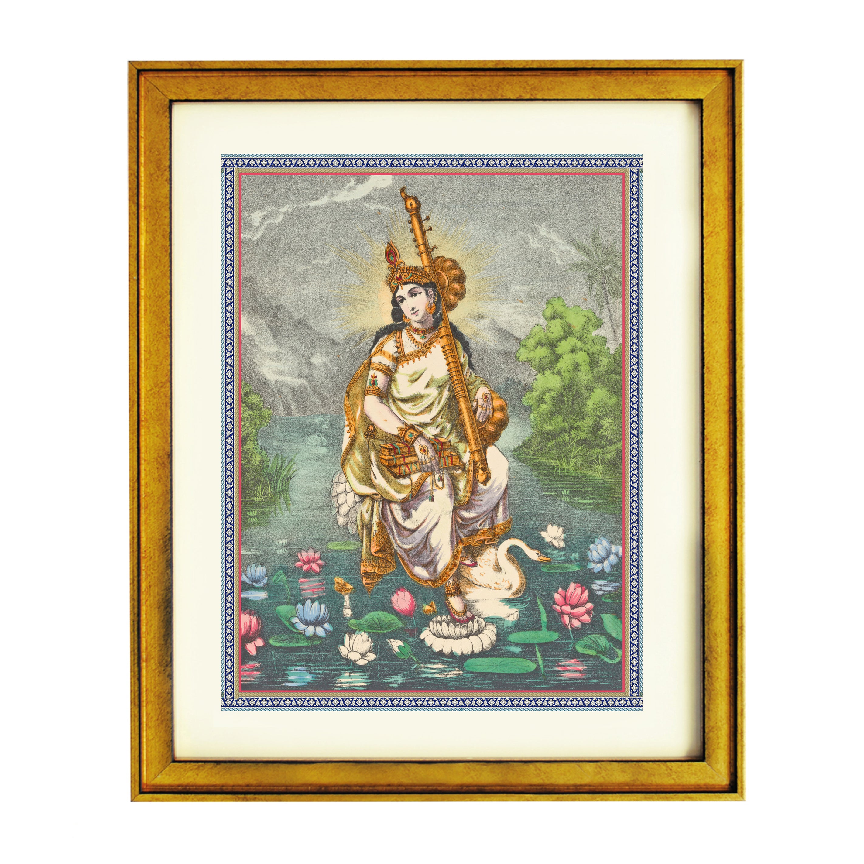 Wunderschönes Wandbild der Göttin Sarasvati! 105x77cm groß, aus 95% Baumwolle mit 5% Pailletten für besonderen Glanz. Sie wird traditionell mit ihrer Veena und einem Pfau dargestellt - Symbol für Schönheit und Kunst. Direktimport aus Indien, also ein echtes Kunsthandwerk-Stück. Bringt spirituelle Energie und Eleganz in deine vier Wände. Einfach aufhängen und den Raum sofort aufwerten. Perfekt für alle, die sich für indische Mythologie interessieren oder einfach was Besonderes für die Wand suchen. Sieht nicht nur gut aus, sondern hat auch kulturelle Tiefe. Ein echter Hingucker!