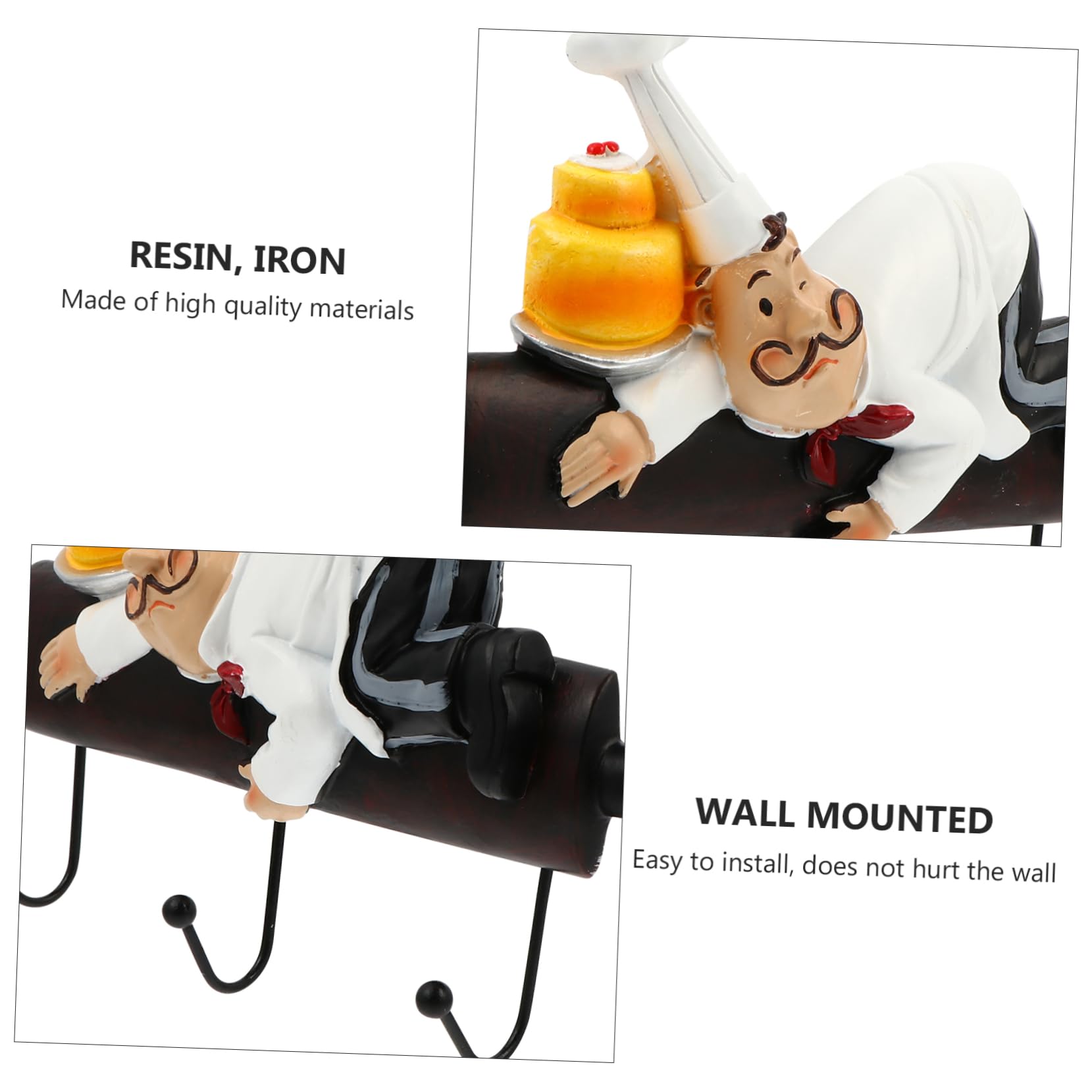 Charmanter Haken-Spaß für deine Küche! Dieses 3er-Set selbstklebender Wandhaken im niedlichen Koch-Design benötigt kein Bohren. Aus robustem Harz mit Edelstahl-Anteilen. Maße: ca. 9,5x5,2x1 cm. Einfach zu installieren - haftet sicher auf glatten Oberflächen. Ideal für Schlüssel, Handtücher, Küchenutensilien oder Deko. Auch perfekt für Bad, Schlafzimmer oder Wohnzimmer. Die abgerundeten Kanten verhindern Verletzungen. Bringt Ordnung und Charme in dein Zuhause - ganz ohne Werkzeuge oder Wandschäden!