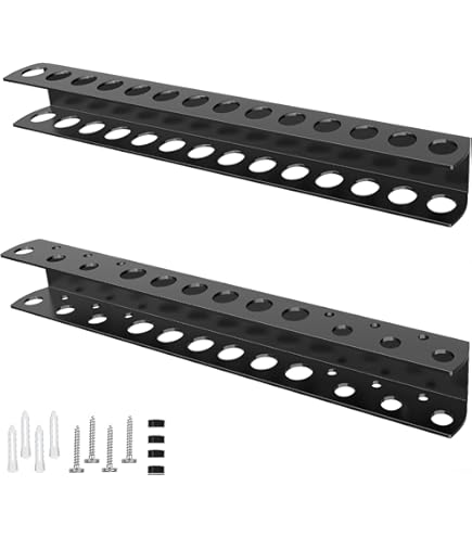 Ordnung in der Werkstatt! Diese praktische Schraubenzieher-Halterung bringt System in deine Werkzeugsammlung. Mit 40cm Länge und 14 Löchern für bis zu 14 Schraubenzieher. Aus robustem Eisen gefertigt, schwarz lackiert für langlebigen Schutz. Inklusive Schrauben und Dübeln für einfache Montage. Einfach an die Wand bohren und schon hast du alle Schraubenzieher griffbereit. Spart Platz und schafft Übersicht in Garage, Werkstatt oder Hobbyraum. Nicht nur für Schraubenzieher - auch Hämmer, Schraubenschlüssel oder Zangen finden hier Platz. Die vertikale Aufbewahrung nutzt den Raum optimal aus. Kein langes Suchen mehr - jedes Werkzeug hat seinen festen Platz. Hochwertige Verarbeitung hält auch schwereren Werkzeugen stand. Endlich eine ordentliche Werkstatt!