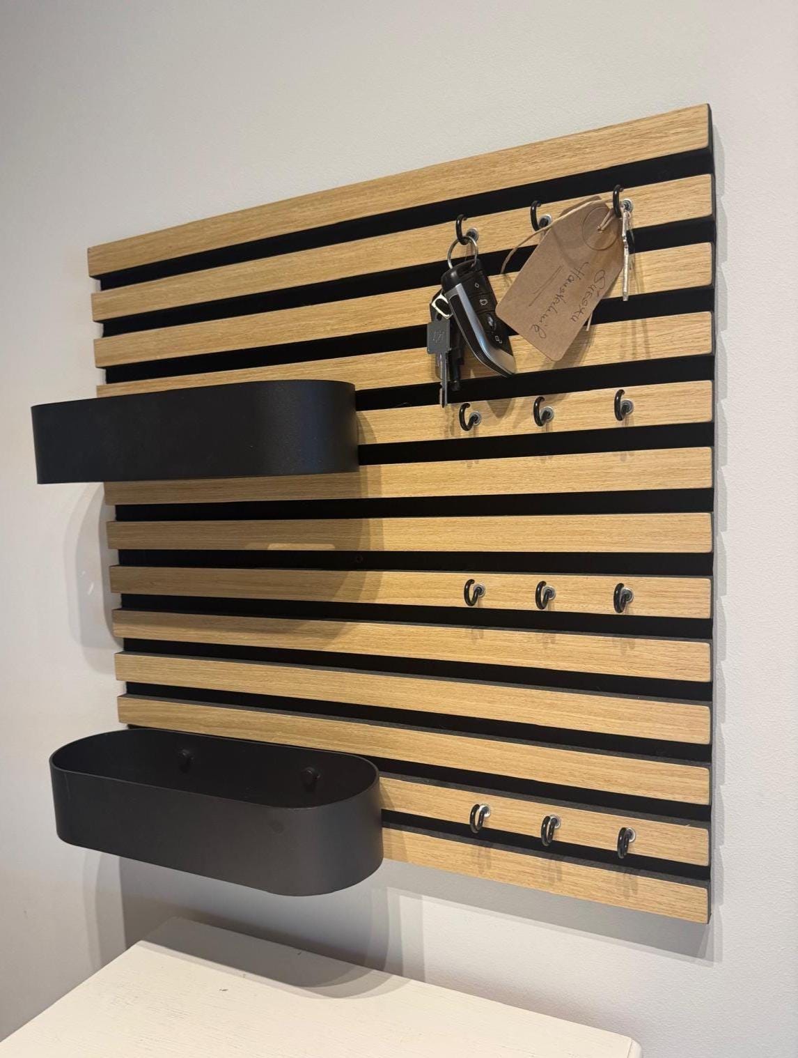 Schlüsselchaos adé! Dieses wunderschöne Schlüsselbrett aus Holz und Metall bringt endlich Ordnung in Ihren Flur oder Eingangsbereich. Mit 5 stabilen Haken haben alle Familienmitglieder Platz für ihre Schlüssel. Die zweistufige Ablagefläche bietet zusätzlich Stauraum für Briefe, Sonnenbrillen oder die Brieftasche. Das geniale: Kein Bohren nötig! Dank Magnet-Saug-Technik mit Klebepad einfach an die Wand drücken - fertig! Die schwarze, matte Oberfläche sieht nicht nur hochwertig aus, sondern ist auch langlebig und rostfrei. Perfekt für Wohnzimmer, Schlafzimmer oder Büro. Das Design ist so stylisch, dass es wie ein Deko-Element wirkt. Einfach montieren, 24 Stunden warten - und schon haben Sie eine praktische und schöne Ordnungslösung. Nie wieder suchen, wo die Schlüssel geblieben sind!