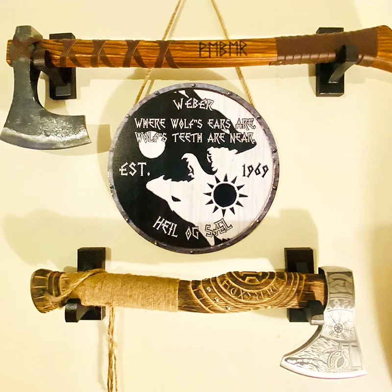 Die Halterung ist super vielseitig: Passt für Schwerter, Äxte, Messer oder Dolche. Im Gegensatz zu Holz bricht das Acryl nicht und bleibt lange schön.