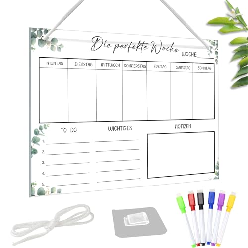 Das Beste: Er ist komplett wiederverwendbar! Einfach die Notizen löschen und schon kann eine neue Woche oder ein neuer Monat geplant werden. Im Paket sind sogar Marker und Radiergummi enthalten.