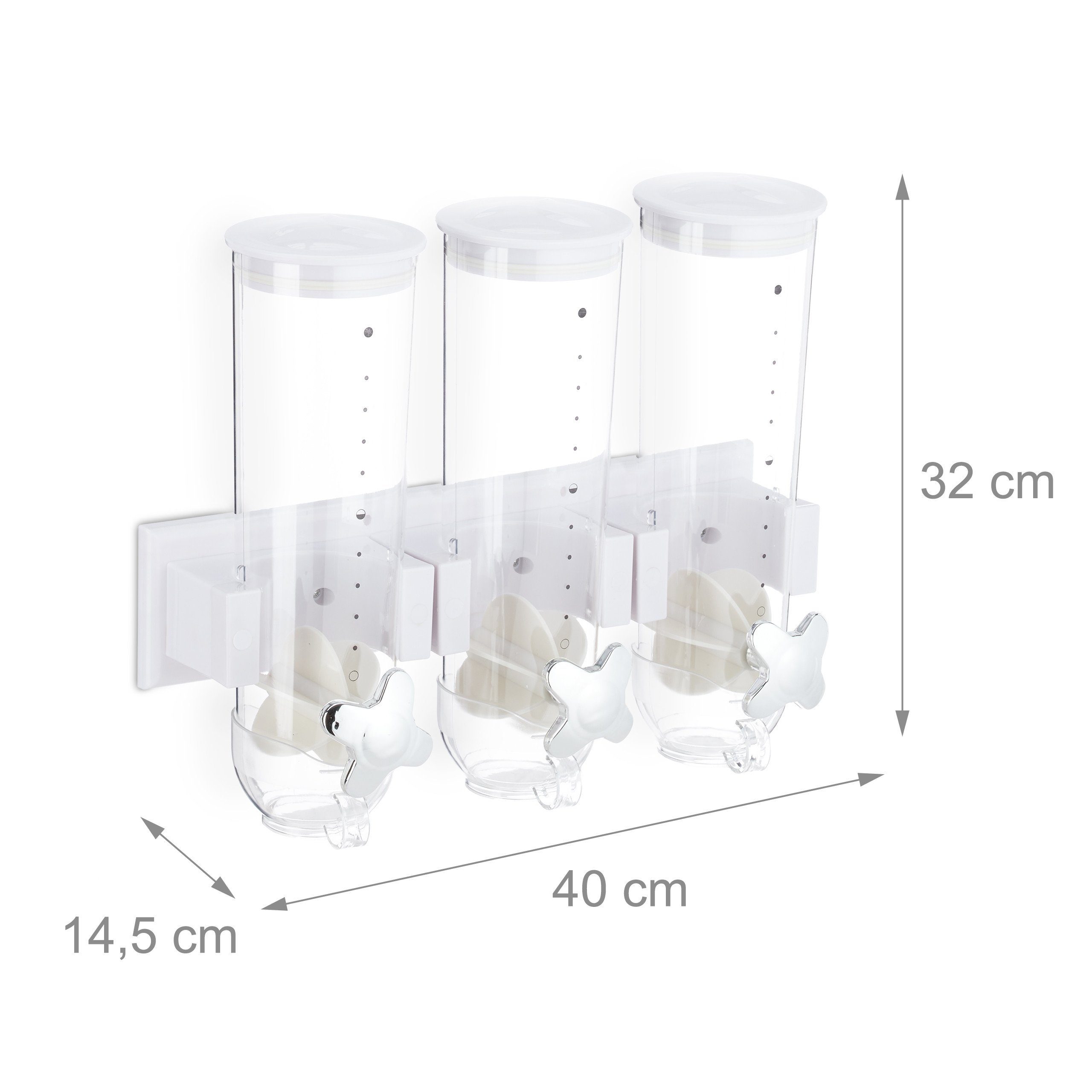 Ordnung in der Küche war noch nie so einfach! Dieser doppelte Müslispender von Bazargame hilft dir, Müsli, Cerealien und Süßigkeiten perfekt zu organisieren.\n\nMit 3 Litern Gesamtvolumen (2x 1,5L Behälter) hast du reichlich Platz für deine Lieblingszutaten. Das transparente Design lässt dich auf einen Blick sehen, was noch vorrätig ist.\n\nHergestellt aus lebensmittelechtem ABS-Material ohne schädliche Weichmacher. Die Behälter sind luftdicht verschlossen - so bleiben deine Lebensmittel länger frisch und knusprig.\n\nSuper praktisch: Einfach den Knopf drücken und die gewünschte Menge fällt in die mitgelieferte Schale. Getrennte Einfüll- und Ausgabestellen sorgen für Hygiene.\n\nDie Wandmontage spart wertvollen Platz in deiner Küche. Im Lieferumfang enthalten: Wandhalterung, 2 Behälter, 2 Messbecher und alle nötigen Schrauben.\n\nNicht nur für Müsli geeignet - auch perfekt für Nüsse, Reis, Nudeln oder Tierfutter. Mit diesem Spender wird das Frühstück zum echten Erlebnis und die Küche sieht immer ordentlich aus!