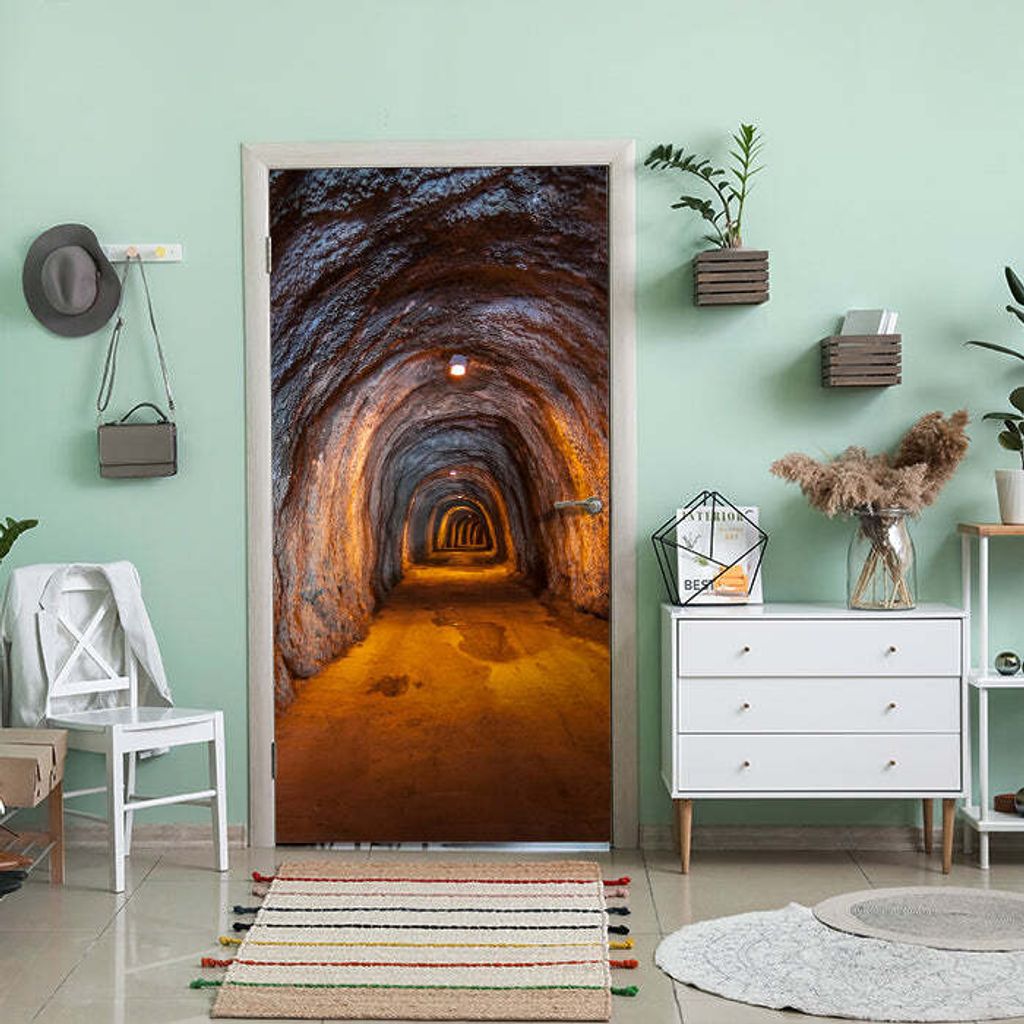 Boah, wie langweilig sind denn weiße Türen? Mach doch mal was Vernünftiges draus! Mit dieser krassen Türtapete verwandelst du deine Tür in ein geiles Tunnel-Design. Einfach abwischen, Folie drauf und fertig – keine Bahnen, kein Kleckern, kein Stress.\\n\\nDas Motiv kommt als ein riesiges Stück bei dir an, 100x200 cm groß, und du klebst es einfach Stück für Stück auf. Perfekt für Kinderzimmer, Wohnzimmer oder auch den Flur – deine Gäste werden staunen, was du draufhast! Und keine Sorge: Die Tapete ist absolut geruchsfrei und unbedenklich, also auch super fürs Kinderzimmer geeignet.\\n\\nÜbrigens: Das Ding wird in Deutschland hergestellt, in Meißen, und kommt sicher verpackt bei dir an. Suchst du noch mehr Motive? Bei wandmotiv24 gibt’s über 800 verschiedene – von Landschaften bis zu Autos ist alles dabei. Also, worauf wartest du noch? Mach deine Tür zum Hingucker!