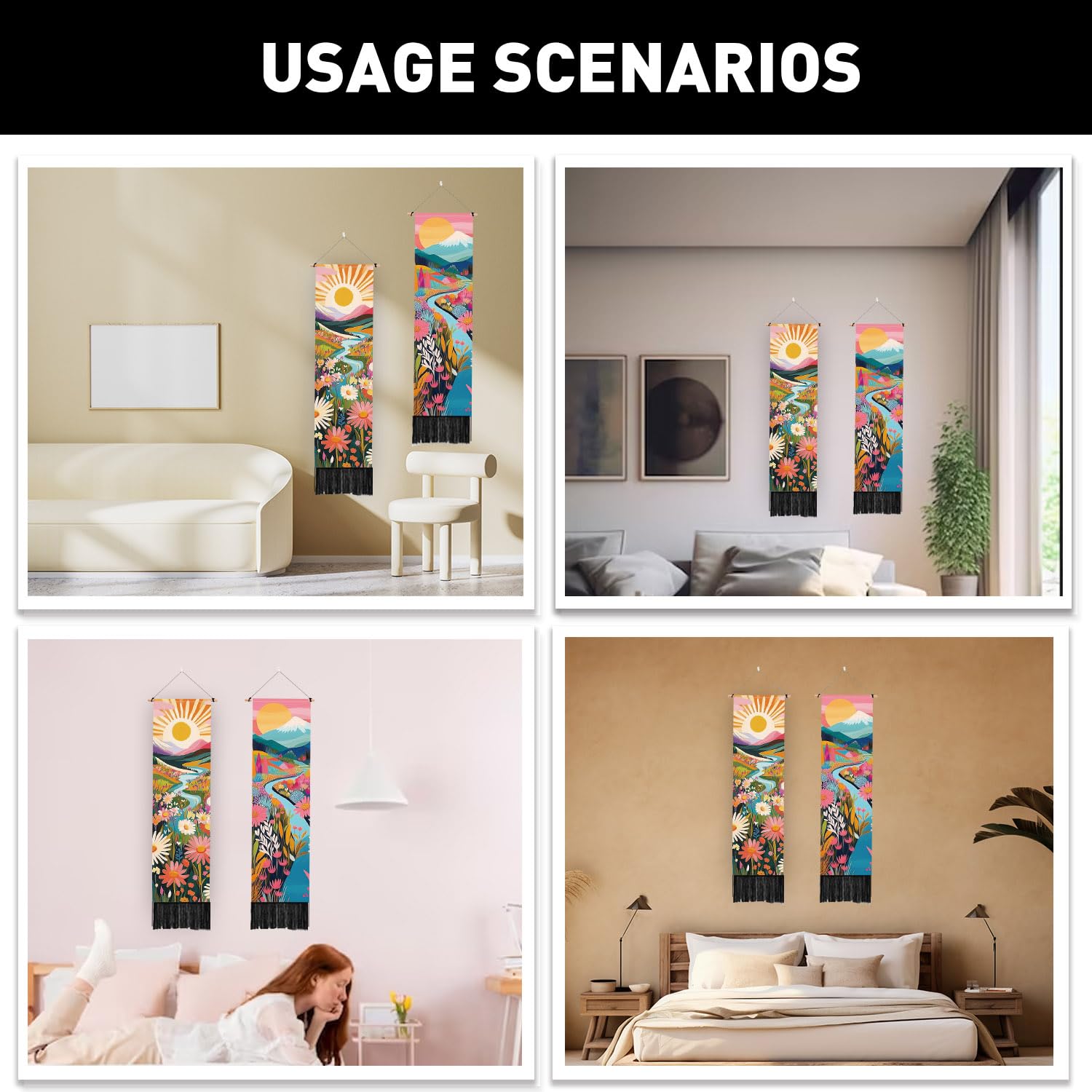 Verwandle deine Wände in kunstvolle Eyecatcher! Dieses Set mit zwei wunderschönen Wandteppichen im Drachen- und Phönix-Design bringt asiatische Eleganz in dein Zuhause. Jedes Stück ist 130cm lang und 33cm breit, mit dekorativen Quasten am unteren Ende. Aus hochwertigem Polyestergewebe gefertigt, weich und farbecht. Komplett mit Aufhängestangen und -seilen - einfach aufhängen und sofort wirkt dein Raum wie verwandelt. Perfekt fürs Wohnzimmer, Schlafzimmer oder als Büro-Deko. Das vintage-ästhische Design passt zu vielen Einrichtungsstilen. Auch ein tolles Geschenk für Einweihungspartys oder Leute, die ihr Zuhause stylisch gestalten wollen. Einfach waschen und schon strahlt es wieder wie neu!