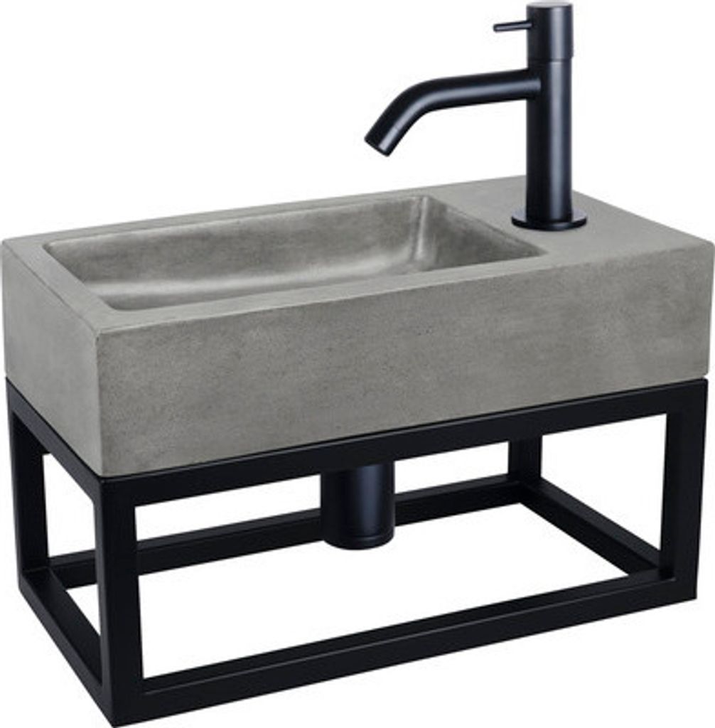 Saqu Naturstein-Waschbecken 40x22x10cm Links - Waschtisch Für Gäste-WC & Unterschrank
