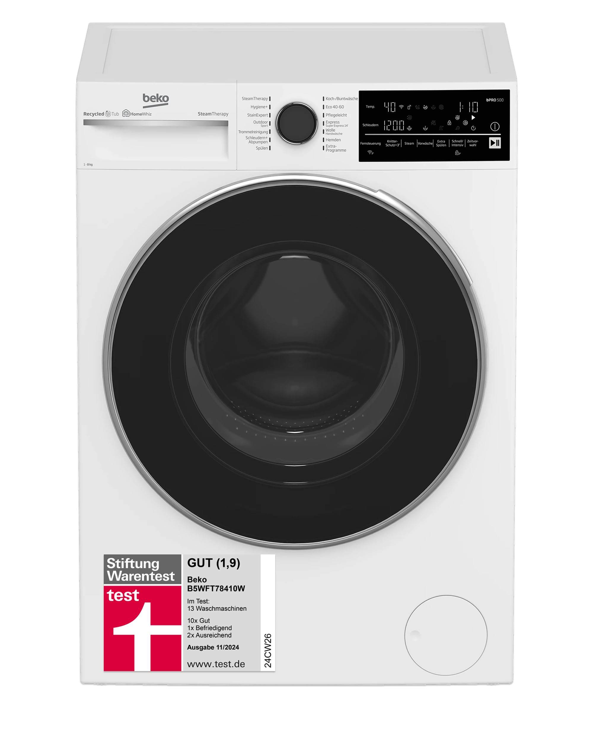 • Beko BPRO 500 Waschmaschine 8kg - Dampffunktion, 1400 U/min, A Energieeffizienz