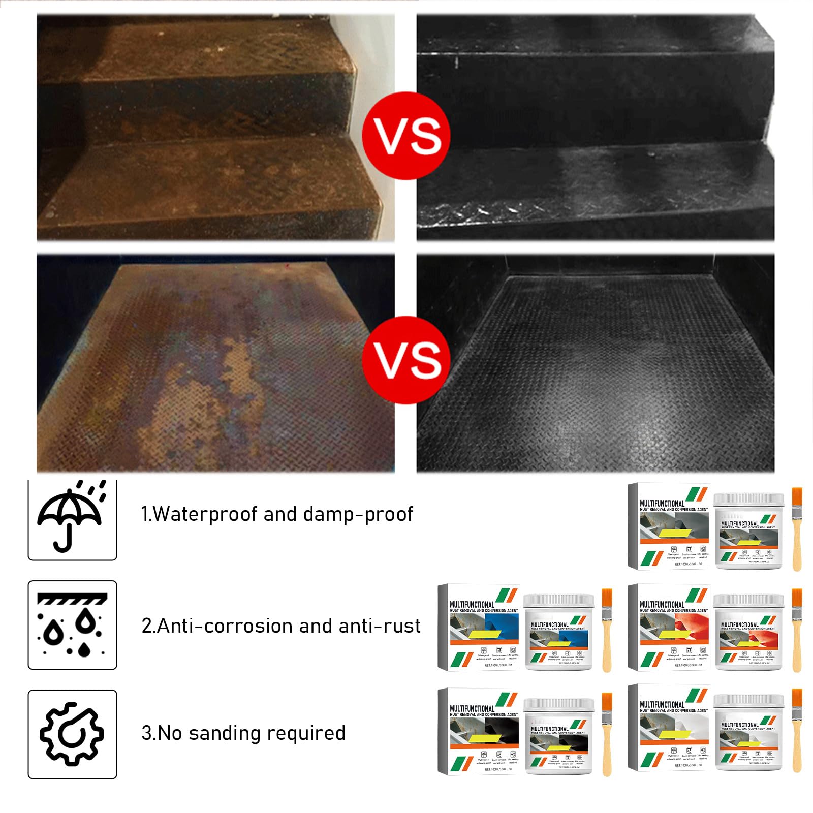 Schluss mit rostigen Metallteilen! Dieser Rostumwandler von XIRUJNFD ist echt praktisch - einfach mit dem Pinsel auftragen und nach 25 Minuten ist der Rost in eine schützende Schicht umgewandelt. Das coole daran: Du musst nicht erst mühsam den Rost abschleifen oder sandstrahlen. Das Zeug ist wasserbasiert, bildet eine super haltbare Schutzschicht und hält bis zu 3 Jahre. Perfekt für alles, was rostet - ob Auto-Chassis, Gartentore, Zäune, Mülltonnen oder auch Türgriffe und Wasserhähne. Einfach die Oberfläche vorher von Staub und Wasser befreien, dann den Converter auftragen und trocknen lassen. Schon bildet sich eine schwarze Schutzschicht, die wie eine Grundierung aussieht und das Metall vor weiterem Rosten schützt. Mit 100g Inhalt und ner praktischen Bürste dabei ist das Set ideal für alle Heimwerker-Projekte. Lagere es einfach an einem kühlen, trockenen Ort und du hast immer den richtigen Helfer gegen Rost parat. Egal ob im Garten, in der Garage oder im Haus - dieser Rostumwandler macht rostige Teile wieder fit und schützt sie langfristig!