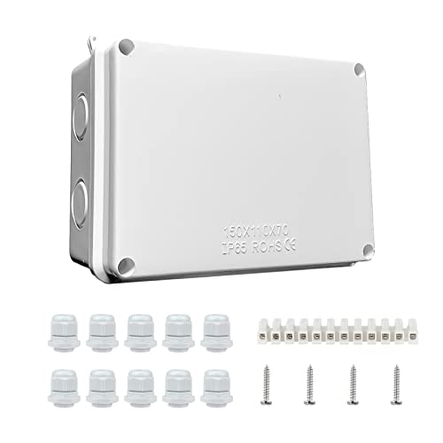 Perfekte Lösung für alle Elektroinstallationen draußen! Diese IP65 wasserdichte Anschlussdose aus robustem ABS ist absolut staub- und wassergeschützt. Maße 150x110x70mm - super geräumig für bis zu 10 Kabel mit 6-12mm Durchmesser. Inklusive 12-poliger Klemme, 10 M20 Kabelverschraubungen und Aufbohrer. Einfache Montage in 3 Schritten: bohren, verkabeln, festschrauben - fertig! Ideal für Gartenbeleuchtung, Außengeräte, Garagen oder Kellerräume. Die Dichtung sitzt bombenfest, kein Wasser kommt durch. Auch für DIY-Enthusiasten super geeignet - keine Vorkenntnisse nötig. Mach deine Elektroinstallationen sicher und wetterfest! Einfach bestellen und installieren - deine Kabel sind bestens geschützt.