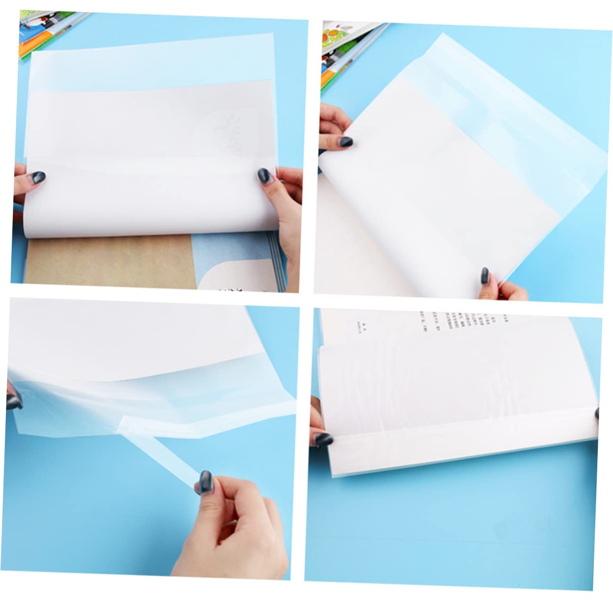 Jede Folie ist aus stabilem PP-Material gemacht und misst etwa 38 x 27 x 0,2 cm. Die sind richtig wasserdicht und halten auch mal ausversehen verschüttete Getränke ab. Und das Beste: Die Hüllen sind komplett transparent, sodass du dein Buch sofort erkennst und die coole Covergestaltung immer noch siehst.
