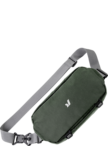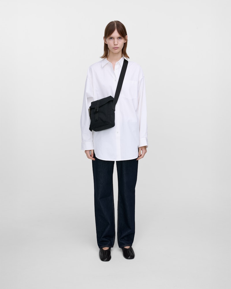 Aus 100% recyceltem Polyester-Ripstop - total wasserabweisend und nachhaltig. Mit verstellbarem Schultergurt und Ledergriff, also super flexibel zu tragen. Schnappverschluss mit Schnalle sieht stylisch aus und hält sicher.