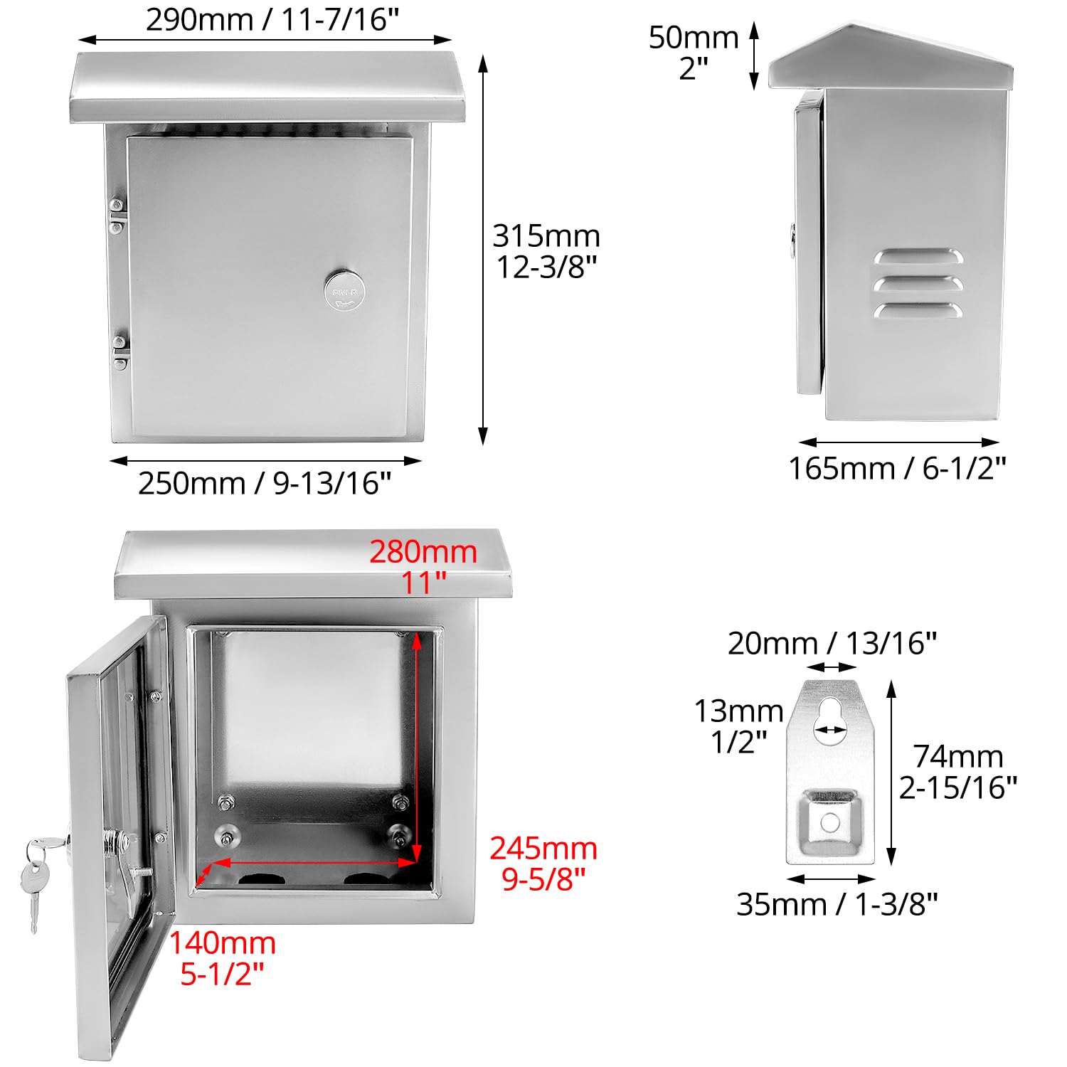 Perfekter Schutz für deine Elektroinstallation! Dieser Edelstahl-Schaltschrank (300x250x140mm) ist richtig robust und hält auch bei schlechtem Wetter stand. Mit IP54 Schutz - hält Regen, Spritzwasser und Staub zuverlässig draußen. Aus poliertem Edelstahl 201 gefertigt, der nicht rostet und super langlebig ist. Innen findest du eine abnehmbare Montageplatte aus verzinktem Stahl - ideal für Schalter, Klemmleisten oder Netzteile. Die integrierten Kabelkanäle sorgen für Ordnung in der Verdrahtung. Das stabile Edelstahlschloss mit festen Scharnieren schützt vor unbefugtem Zugriff. Montage ist total einfach: 4 Befestigungslöcher an der Rückseite und Kabelführungen mit Stopfbuchsen an der Unterseite. Perfekt für überdachte Außenbereiche oder Innenräume - deine Elektronik ist hier bestens aufgehoben! Übrigens: Auch wenn er wasserdicht ist, sollte er nicht direktem Dauerregen oder Untertauchen ausgesetzt werden. Einfach an die Wand, Kabel durchführen und schon bist du startklar!