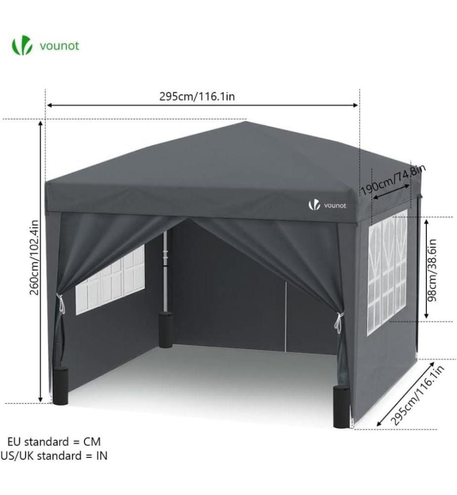 Perfekter Begleiter für Outdoor-Events! Dieser Quictent Pavillon (3x3m) bietet 9m² Schattenfläche für bis zu 10 Personen. Inklusive 4 abnehmbarer Seitenteile (2 mit Reißverschluss, 2 mit Moskitonetz). Wasserdichtes 210D Oxford-Gewebe mit UV 50+ Schutz. Höhenverstellbar (265-285 cm), in 10 Minuten aufgebaut. Mit Tragetasche, 4 Sandsäcken und 8 Erdnägeln. Ideal für Gartenpartys, Märkte, Strand oder Camping. Dein zuverlässiger Schattenspender!