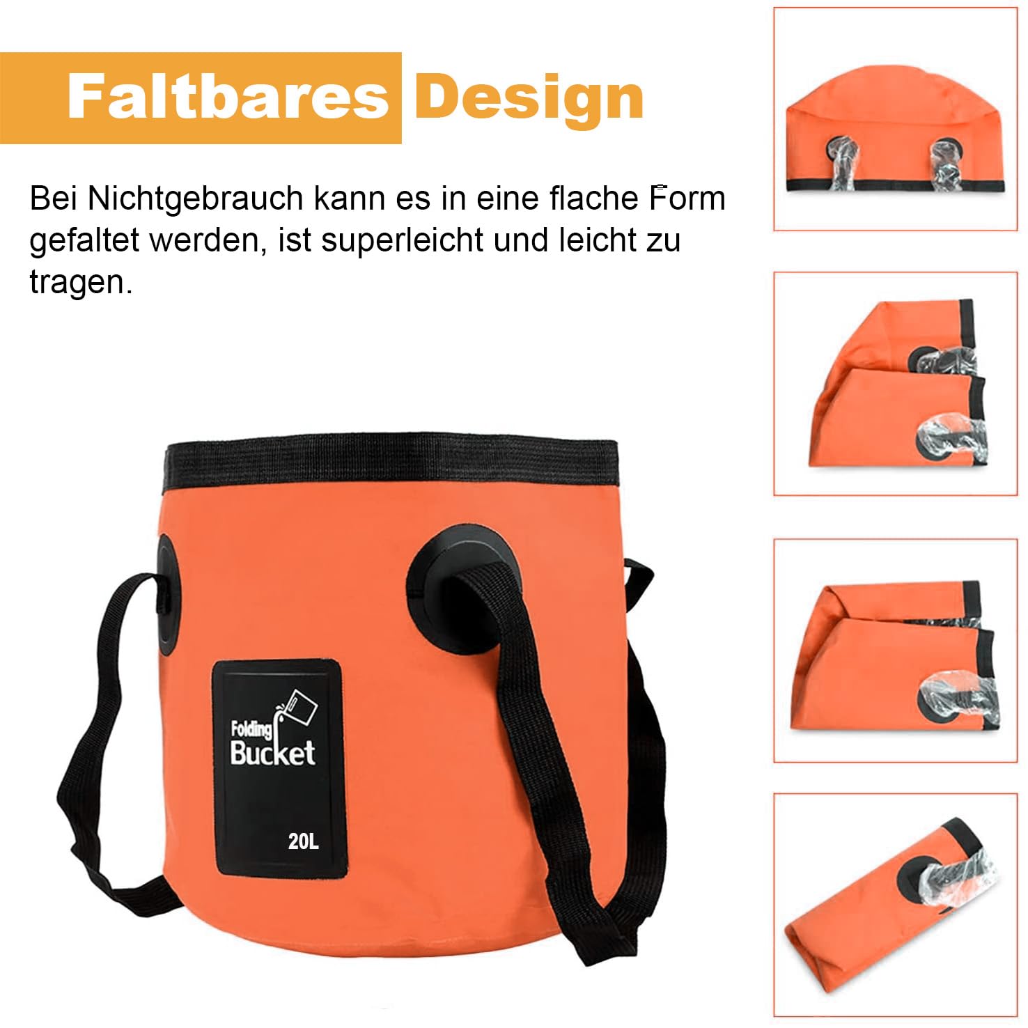 Dieser faltbare Eimer ist der absolute Allrounder für drinnen und draußen! Mit stolzen 20 Litern Fassungsvermögen und den Maßen 27x30 cm ist er perfekt für Camping, Gartenarbeit, Angeln oder die nächste Autowäsche. Der integrierte Wasserhahn mit regelbarer Durchflussmenge ist ein echtes Game-Changer - damit kannst du präzise Wasser entnehmen, ohne den Eimer anheben zu müssen. Super praktisch fürs Händewaschen, Blumen gießen oder wenn die Kinder durstig sind. Aus robustem PVC-Material mit wasserdichter Beschichtung und verstärkten Nähten - da tropft garantiert nichts aus! Nach dem Gebrauch einfach zusammenfalten und platzsparend im Rucksack verstauen. Mit nur 330 Gramm ist er super leicht zu transportieren. Der rutschfeste Griff macht das Tragen auch bei voller Belastung einfach. Ein unverzichtbarer Helfer für alle Outdoor-Aktivitäten!