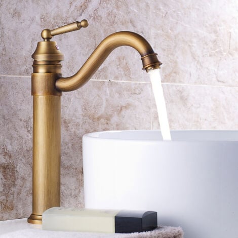 Wasserhahn Retro Bronze Einhebelmischer - Waschtischarmatur Bad Hoch Antik Messing