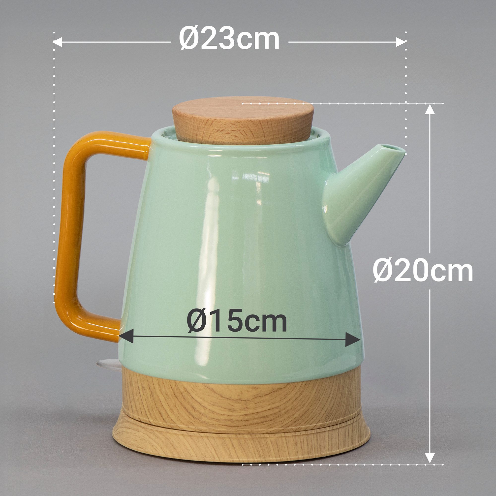 Boah, dieser Wasserkocher ist ja mal richtig stylisch! Der KVOTA Serene besteht aus echter Keramik und hat nen echten Holzdeckel - sieht aus wie aus nem Interior-Magazin. Mit 1,5 Liter Fassungsvermegen perfect für Familien oder wenn du öfter Gäste hast. Die 1350-1600 Watt Leistung bringen das Wasser richtig fix zum Kochen. Das coole ist: komplett BPA-frei und geschmacksneutral - da bleibt kein komischer Plastikgeschmack im Wasser! Die LED-Anzeige leuchtet rot während des Aufheizens - siehst du sofort wenn er fertig ist. Der 360° drehbare Sockel ist super praktisch und das Kabel (65 cm) lässt sich sauber in der Basis verstauen. Trockengehschutz ist auch dabei - falls mal kein Wasser drin ist, schaltet er sich automatisch ab. Perfekt für Scandi- oder Boho-Küchen - macht sich richtig gut auf der Arbeitsplatte! Und mit 2 Jahren Garantie bist du auf der sicheren Seite. Maße: 20 cm hoch, 23 cm breit - passt auch in kleinere Küchen super hin. Einfach ein richtig schönes Teil das nicht nur gut aussieht, sondern auch super funktioniert!