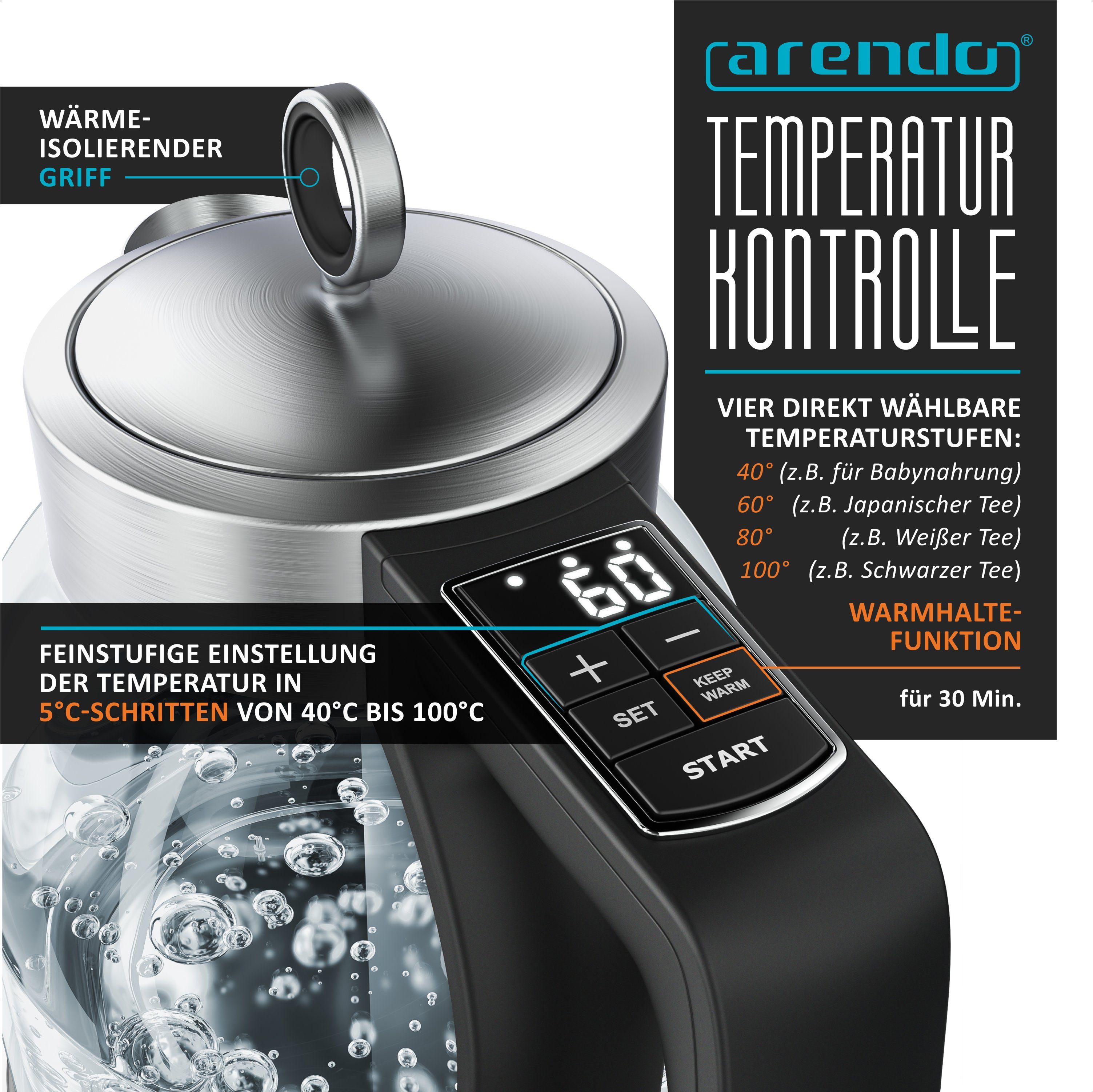 Heißwasser on demand! Dieser stylische Wasserkocher aus 304er Edelstahl hat 4 Liter Fassungsvermögen und heizt mit 750W blitzschnell auf. Das coole Feature: Drei verschiedene Ausgabemethoden! Per Knopfdruck, durch Berührung des Becherrands oder per Luftdruck - selbst bei Stromausfall bekommst du noch Wasser. Die digitale Anzeige zeigt die Temperatur an, und die 30-Minuten-Warmhaltefunktion sorgt für stets heißes Wasser. Sicherheitsfeatures wie Trockengehschutz inklusive. Perfekt für Familie, Büro oder wenn du oft Tee, Kaffee oder Instantgerichte genießt. Modernes Design in Grau, einfach zu reinigen - dein neuer Küchenliebling!