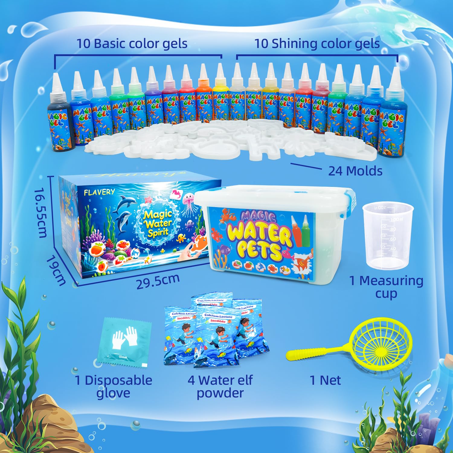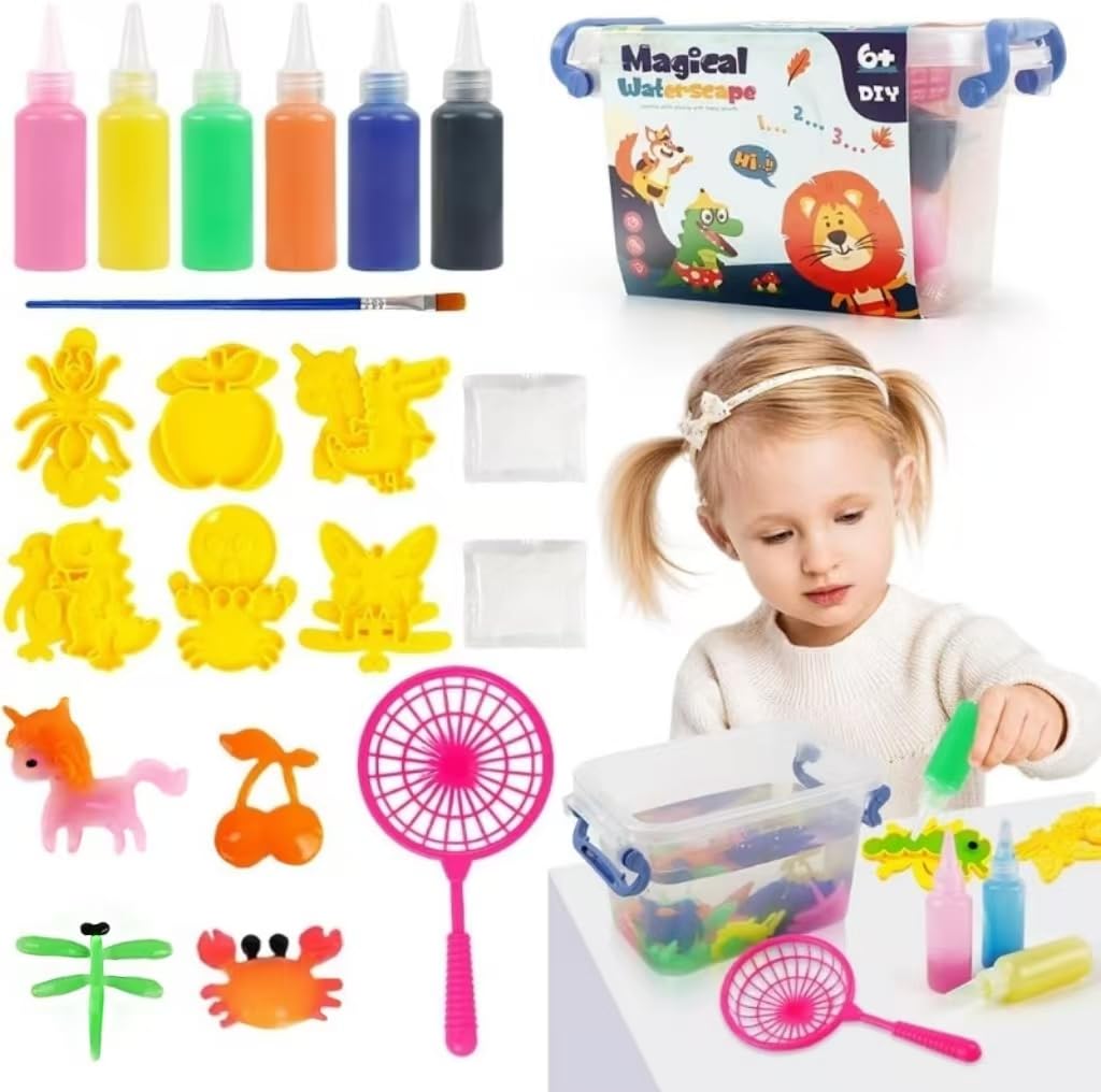 Magischer Spaß für kleine Entdecker! Mit diesem Magic Water Elf Set können Kinder ihre eigenen Wassertierchen erschaffen. Einfach das bunte Hydrogel in die 10 verschiedenen Tierformen füllen, ins Zauberwasser tauchen - und schon entstehen niedliche Kreaturen! Das Set enthält alles, was man braucht: 12 Farben magisches Gel, 4 Zauberpulver, Handschuhe, Netzlöffel und Aufbewahrungsflasche. Perfekt für Kinder von 5-8 Jahren, um Kreativität und Feinmotorik zu fördern. Die Materialien sind ungiftig und sicher - da können Eltern beruhigt zuschauen. Ideal für Kindergeburtstage, Regentage oder als besonderes Geschenk zu Weihnachten. Die Augen der Kinder werden strahlen, wenn sie ihre eigenen Aqua-Elfen zum Leben erwecken! Einfache Anleitung inklusive - so macht Basteln Spaß!