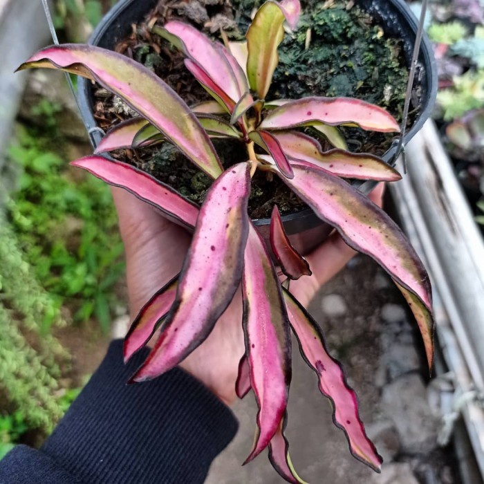 Pflanzenliebhaber, aufgepasst! Diese超美丽的Hoya wayetii variegata ist ein absoluter Blickfang mit ihren bunten Blättern. Die Blätter zeigen verschiedene Grün- und Rosatöne - jedes Blatt ein Unikat! ❤ Blätter: Bunt panachiert in Grün-Rosa ❤ Blüten: Rote Porzellanblüten mit samtigem Schimmer ❤ Pflege: Sukkulent - nicht zu viel gießen ❤ Standort: Hell bis halbschattig - perfekt als Ampelpflanze Diese Hoya ist super pflegeleicht und verzeiht auch mal vergessenes Gießen. Einfach in throughlässige Erde pflanzen und mäßig gießen. Im Sommer können sich die wunderschönen Blüten bilden - ein richtiges Highlight! Perfekt fürs Wohnzimmer, Büro oder als hängende Pflanze. Achtung: Nur begrenzt verfügbar - also schnell zuschlagen und dein Zuhause verschönern!