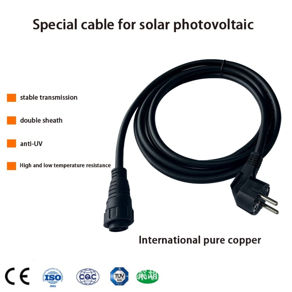 Für deine Solaranlage brauchst du ein zuverlässiges Kabel? Hier ist es! Dieses AC-Kabel ist perfekt für Wechselrichter wie WVC 600, 700, 1200, 1400 und 1600. Es ist aus Kupfer und PVC gefertigt, super flexibel und hält auch bei Sonne und Regen stand. Dank dem wasserdichten Ring ist es staub- und feuchtigkeitsgeschützt - ideal für draußen. Du kannst zwischen 2m, 3m, 5m oder 10m Länge wählen, je nachdem wie weit dein Wechselrichter entfernt ist. Einfach anschließen und deine Anlage läuft reibungslos. So machst du deine Energiegewinnung effizienter und sicherer!