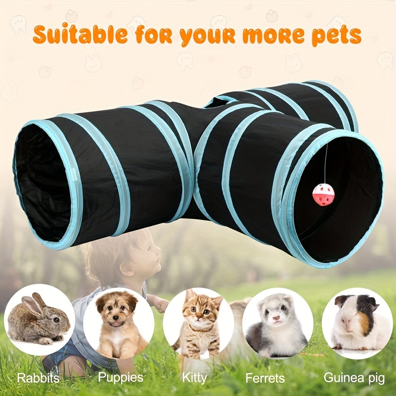 Spielspaß für kleine Tiere! Dieser HYLYUN Kaninchentunnel mit 3 Wegen bietet endlosen Erkundungsspaß. Zusammenklappbar für einfache Aufbewahrung und Transport. Mit Guckloch und beweglichem Ballspielzeug für extra Unterhaltung. Aus robustem Polyester und flexiblem Stahldraht-Rahmen - hält auch wildem Spiel stand. Perfekt für Kaninchen, Meerschweinchen, Chinchillas und kleine Kätzchen. Gib deinem Haustier den perfekten Platz zum Verstecken, Spielen und Schlafen. Einfach aufstellen und zusehen, wie viel Spaß dein Tier hat!