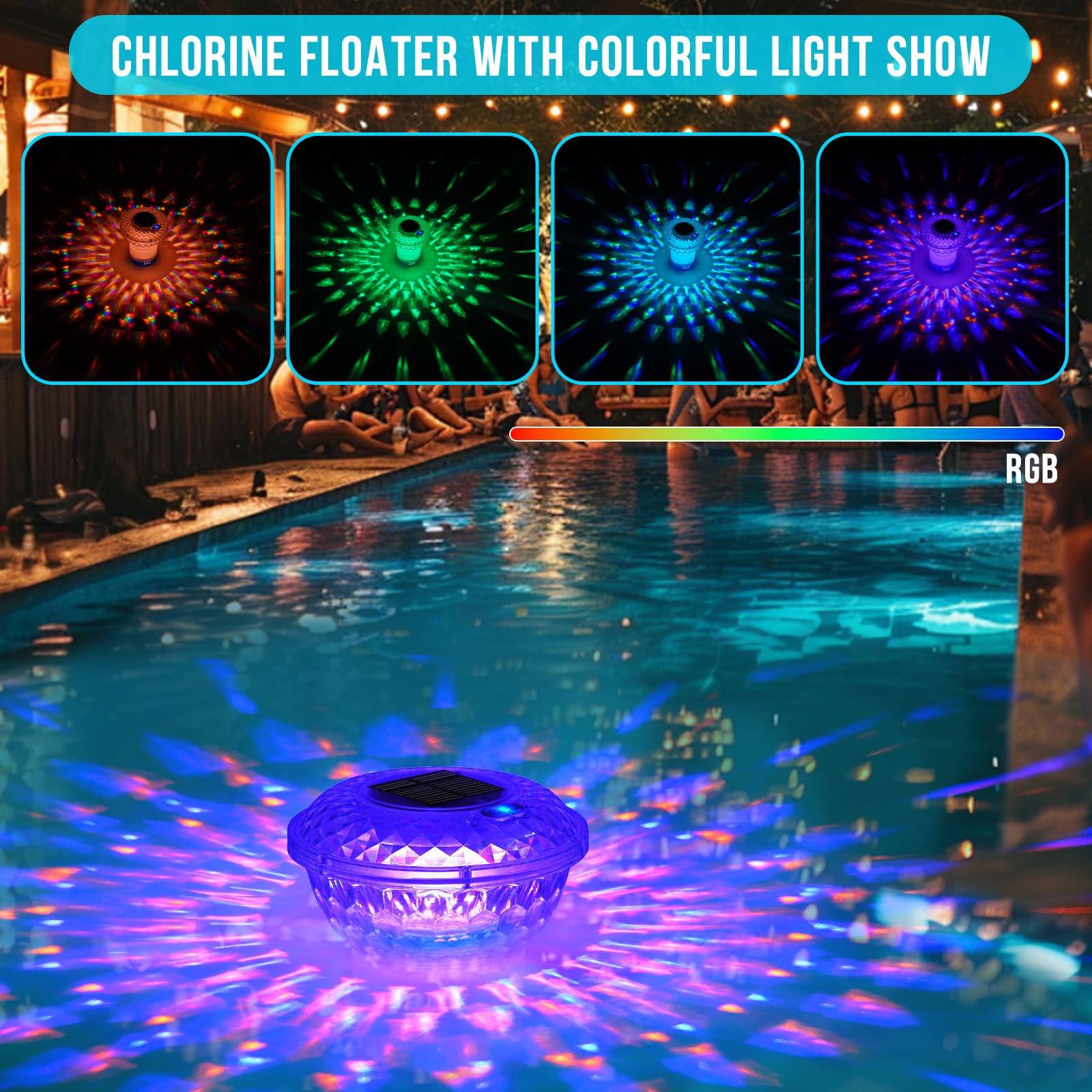 Wow, das ist clever! Dieser Solar Pool Chlorine Floater ist ein echter 2-in-1 Alleskönner für deinen Pool. Tagsüber schwimmt er einfach rum und verteilt ganz entspannt Chlor - nachts verwandelt er sich in eine coole LED-Lichtshow! Vollständig solarbetrieben, musst du ihn nie aufladen. Mit IP68 ist er absolut wasserdicht und hält jedes Wetter aus. Perfekt für Pools, Gartenteiche oder Springbrunnen. Einfach Chlor-Tabletten rein, ins Wasser legen und den Rest erledigt er von alleine. Dein Pool bleibt sauber und sieht dabei noch mega stylisch aus! Mit 12cm Durchmesser und 220g Gewicht ist er handlich aber wirkungsvoll.