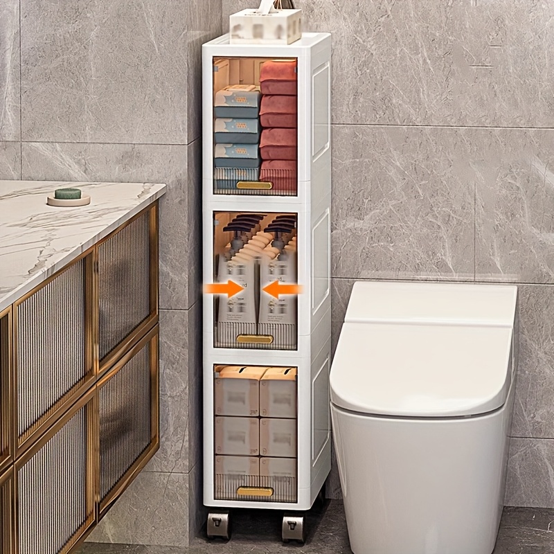 Endlich Ordnung im Bad! Dieser super-schmale Schrank (nur 30x30cm!) passt auch in die kleinste Ecke. Mit 89cm Höhe und verstellbaren Regalen - du bestimmst, was wo hinkommt. Handtücher, Kosmetik, Toilettenpapier - alles hat jetzt seinen Platz. Aus feuchtigkeitsbeständigem MDF - hält auch im feuchten Badezimmer ewig. Einfach zusammenzubauen - keine Werkzeuge nötig! Die wasserfesten Füße schützen vor Bodenfeuchtigkeit. Ob neben dem WC, unter dem Waschbecken oder in der Gästetoilette - dieser Schrank bringt System in dein Bad. Mehr Stauraum, weniger Chaos - bestell jetzt und mach dein Bad endlich aufgeräumt!