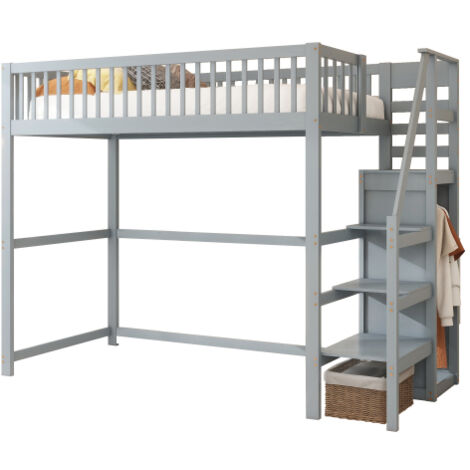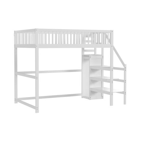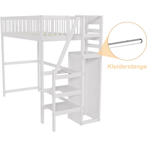 Platzsparend und super praktisch! Dieses weiße Hochbett aus Massivholz verwandelt jedes Kinderzimmer in ein multifunktionales Paradies. Mit den Maßen 255 x 95 x 179 cm bietet es oben einen gemütlichen Schlafbereich (90x200 cm) und unten riesigen Platz für einen Schreibtisch, Sofa oder Spielbereich. Die integrierte Sicherheitsleiter macht das Ein- und Aussteigen für Kinder sicher, während der eingebaute Kleiderschrank für ordentliche Verhältnisse sorgt. 15 Latten im Rost sorgen für optimale Stabilität und eine maximale Belastbarkeit von 150 kg. Das hohe Geländer mit vertikalen Holzstangen bietet zusätzliche Sicherheit. Montage erforderlich, aber alle Werkzeuge sind im Lieferumfang enthalten - kein Elektrowerkzeug nötig! Achtung: Das Bett wird in zwei Paketen geliefert, die möglicherweise nicht gleichzeitig ankommen. Matratze nicht enthalten. Perfekt für kleine Räume oder Geschwisterzimmer!