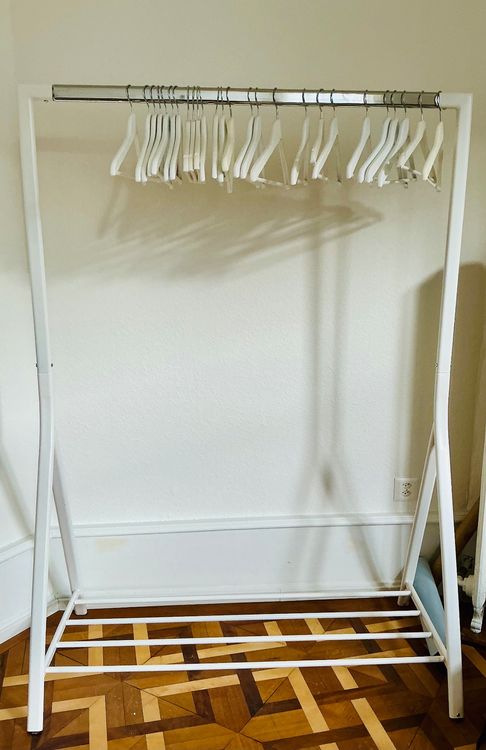 Super einfach aufzubauen, keine komplizierte Montage nötig. Sie steht sicher und kippt nicht um, selbst wenn sie voll behängt ist. Die weiße Farbe bleibt schön sauber und verblasst nicht.