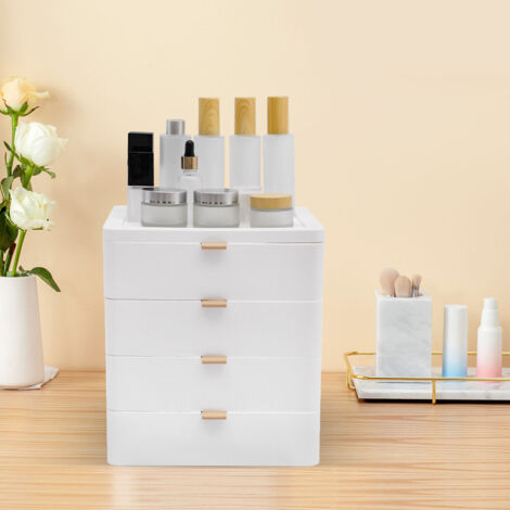 Endlich Ordnung auf dem Schreibtisch! Diese weiße Aufbewahrungsbox mit 4 Schubladen und einer Oberplattform ist der perfekte Organizer für dein Zuhause oder Büro. Mit den Maßen 26 x 20,2 x 29 cm passt sie super auf jeden Tisch und bietet reichlich Stauraum für Bürobedarf, Kosmetik, Schmuck, Snacks oder was du sonst so organisieren willst. Aus robustem PP-Material gefertigt, das bis zu 5 kg tragen kann. Die konvexen Kanten verhindern, dass Gegenstände herunterfallen, die runden Ecken schützen vor Kratzern und die komfortablen Griffe machen das Öffnen der Schubladen zum Kinderspiel. Ohne Montage - einfach auspacken und sofort nutzen! Perfekt fürs Home-Office, Kinderzimmer, Schlafzimmer oder Wohnzimmer. Das moderne, weiße Design passt zu jedem Einrichtungsstil und sieht dabei noch super stylisch aus. Hol dir diese praktische Aufbewahrungsbox und verabschiede dich vom Chaos!