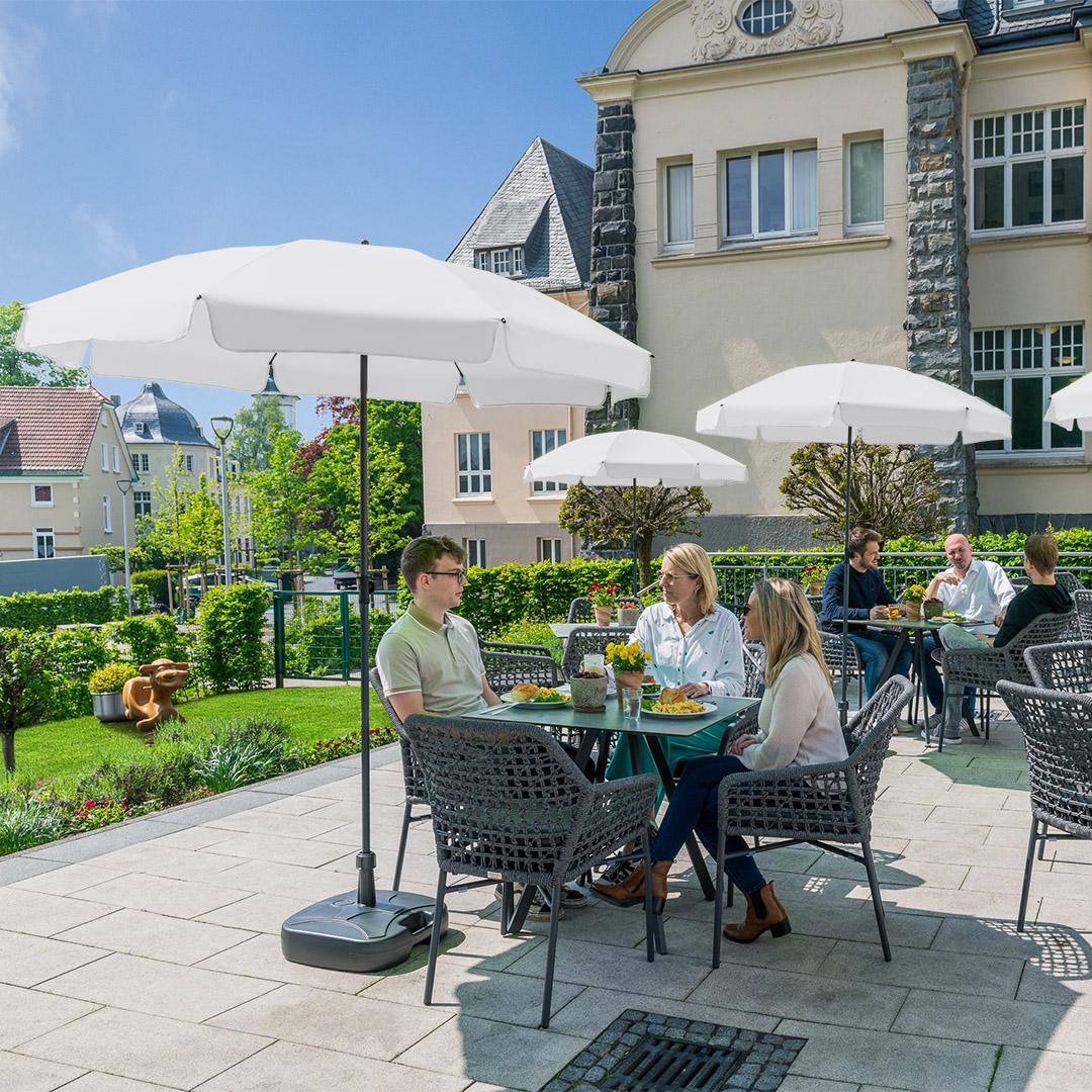 Oh wie stylisch! Diese weißen Sonnenschirmchen bringen sofort Urlaubsfeeling an deine Drinks! Mit 56cm Durchmesser und 70cm Länge - die perfekte Größe für Cocktails, Longdrinks und Desserts. Ob für die nächste Gartenparty, Hochzeit, Geburtstag oder einfach mal unterwegs - diese Schirmchen machen jeden Drink zum Hingucker! Aus stabilem Material - halten auch bei feuchter Umgebung. Einfach in den Drink stecken und schon sieht alles professionell aus. Perfekt für Bars, Restaurants oder private Feiern. Bringt sofort karibisches Flair auf deine Terrasse! Auch toll als Deko für Buffets oder Desserttabletts. In klassischem Weiß - passt zu jedem Glas und jeder Getränkefarbe. Einfach bestellen und deine Gäste mit diesen niedlichen Schirmchen überraschen! Qualität die ankommt - made by Widmann, den Profis für Partyzubehör!