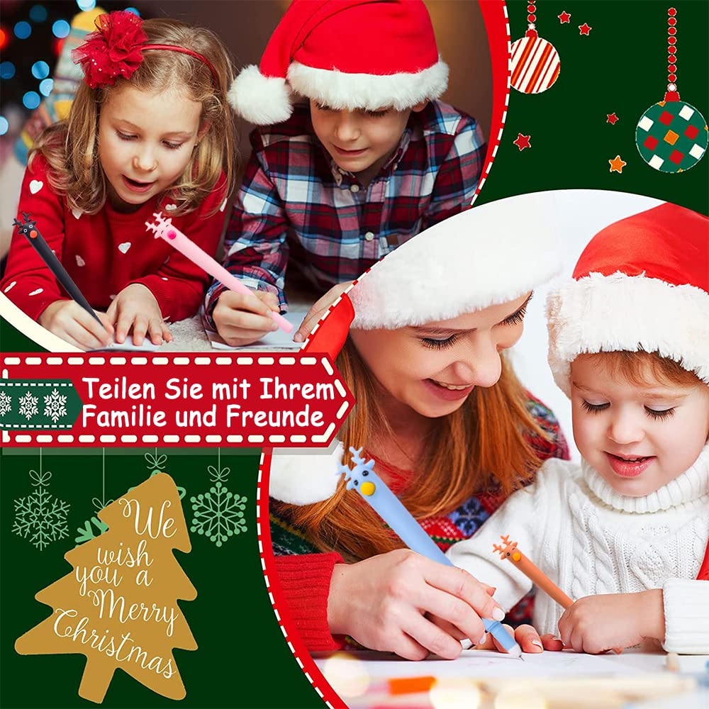Weihnachtszeit ist Schreibzeit! Mit diesem niedlichen 8er-Set Weihnachtsstiften von AMSNINK bringst du festliche Stimmung auf jedes Papier. Die Stifte haben verschiedene Weihnachtsmotive wie Glocken, Nikolaus, Weihnachtsbaum und Schneemann - da ist für jeden Geschmack was dabei. Die Tinte schreibt super glatt und trocknet schnell, das merkst du besonders beim Schreiben von Weihnachtskarten oder beim Malen. Perfekt für Kinder in der Schule, Studenten, Lehrer oder einfach fürs Büro. Das Set ist auch eine tolle Idee für kleine Nikolaus-Geschenke oder als Mitgebsel für die Weihnachtsfeier. Einfach praktisch: Du hast immer mehrere Stifte parat und musst nicht ständig suchen. So macht Hausaufgaben machen oder Weihnachtskarten schreiben gleich doppelt Spaß! Ob unter den Tannenbaum oder in die Schultüte - diese festlichen Stifte bringen garantiert Freude.