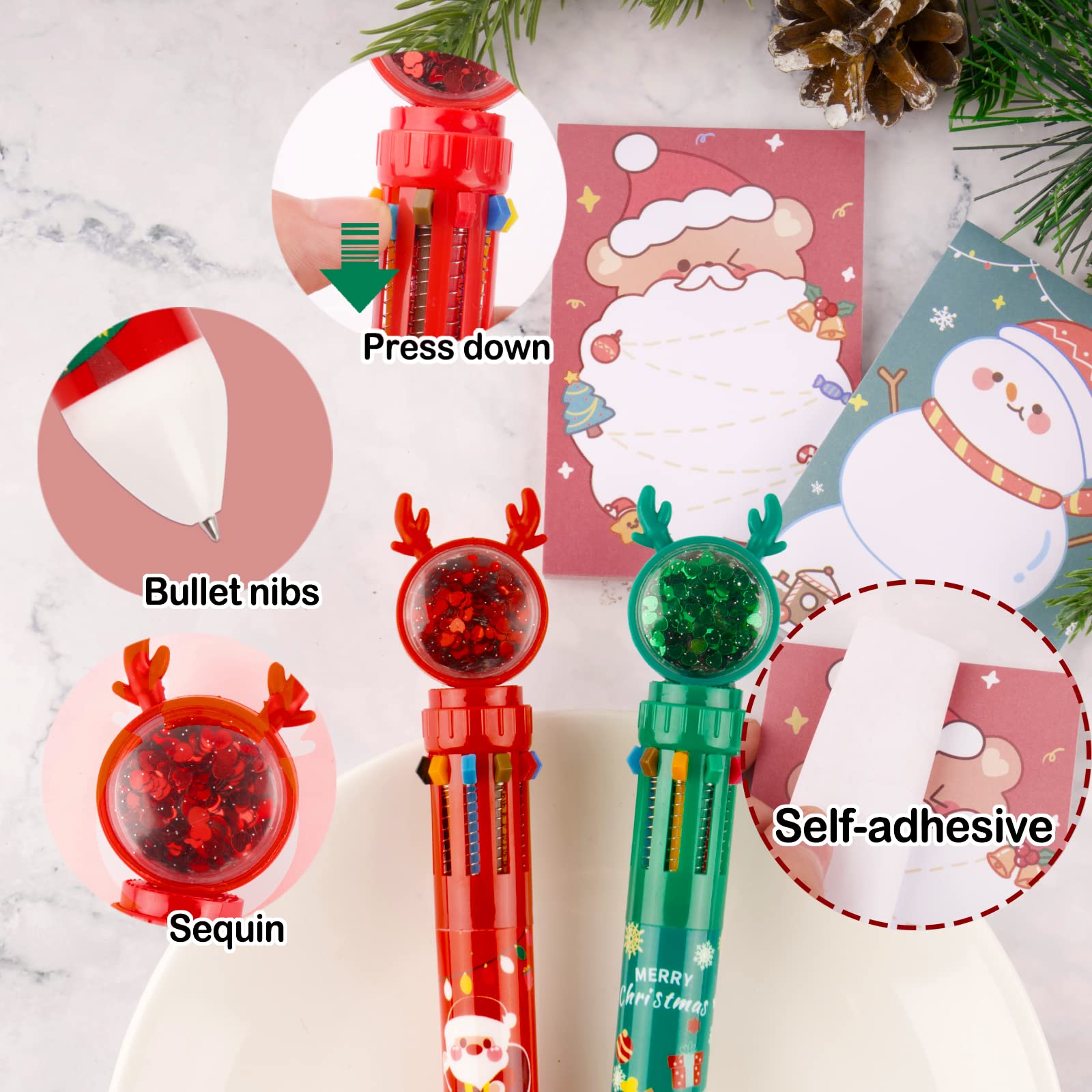 Ho ho ho - weihnachtliche Schreibfreude! Dieses super coole Set mit 8 Weihnachts-Kugelschreibern bringt Festtagsstimmung auf jeden Schreibtisch. Jeder Stift hat ein niedliches Weihnachtsmotiv - vom Weihnachtsmann über Rentiere bis zum Schneemann! Aber das Beste: Jeder Stift ist ein 10-in-1 Multifunktionswunder! Einziehbar, mit 10 verschiedenen Farben - perfekt für Notizen, Markierungen, Zeichnungen und mehr. Inklusive 4 hübschen Haftnotizen-Blöcken für alle deine wichtigen Erinnerungen. Super praktisch als Mitgebsel für Kollegen, super als Geschenk für Schüler, oder einfach für dich selbst! Die hochwertige Verarbeitung garantiert langanhaltende Schreibfreude. Mach deine Weihnachtsvorbereitung bunter und fröhlicher mit diesen festlichen Stiften! Perfekt für die Weihnachtszeit - aber so praktisch, dass du sie das ganze Jahr über verwenden willst!