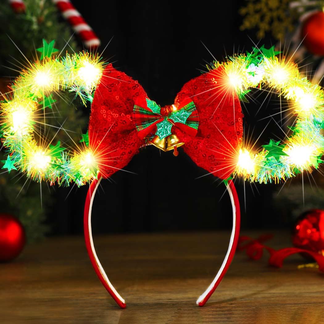 Ho Ho Ho! Dieses Weihnachts-Stirnband mit leuchtenden Maus-Ohren macht dich zum Star jeder Weihnachtsfeier! 🎄\n\nDas grün-rote Design ist der absolute Weihnachts-Klassiker schlechthin! Die niedlichen Maus-Ohren mit integrierten LED-Lichtern leuchten in festlichem Glanz und ziehen alle Blicke auf sich.\n\nAus einer Mischung von Polyester und Kunststoff gefertigt, ist das Stirnband robust und bricht nicht leicht. Die Glöckchen und glänzenden LED-Lichter sorgen für den perfekten Weihnachts-Look.\n\nIn Einheitsgröße passt es den meisten Kopfumfängen - ob für Damen, Jugendliche oder auch mutige Herren. Einfach aufsetzen und schon bist du weihnachtlich gestylt!\n\nPerfekt für Weihnachtspartys, Firmenfeiern, Schulaufführungen, Cosplay-Events oder Bühnenauftritte. Dieses Stirnband passt zu jedem Weihnachtskostüm und jeder Frisur.\n\nEin ideales Geschenk für Familienmitglieder, Freunde oder einfach für dich selbst. Besonders praktisch: Es dient auch als wunderbares Foto-Requisit für unvergessliche Weihnachtsbilder!\n\nWichtig: Die Farben können je nach Beleuchtung und Bildschirm leicht variieren. Bei Rückgabe bitte das Produkt unbenutzt und in Originalverpackung lassen.\n\nEinfach bestellen und zur Weihnachtsfeier im besten Licht erstrahlen - dieses Stirnband garantiert dir Komplimente ohne Ende!