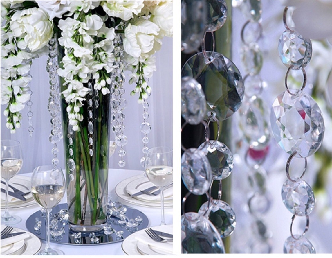 Weihnachtsbaum Perlen Girlande 10m - Kristall Acryl Perlenkette Silber