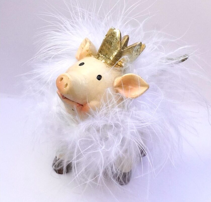 • Weihnachtsbaum Schmuck Geflügeltes Schwein - Handbemalter Christbaumschmuck 10cm