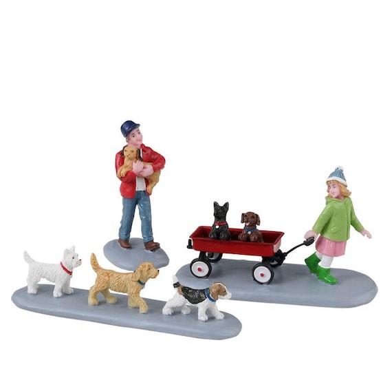 Oh wie süß! Diese Lemax Weihnachtsdorf-Figur 'Neue Welpen' bringt richtig gemütliche Weihnachtsstimmung in dein Zuhause. Ein Junge mit grünem Hut und roter Jacke sitzt auf dem Boden und freut sich über die beste Weihnachtsüberraschung überhaupt: drei niedliche Welpen in Weihnachtsmützen, die um ihn herumtollen! Diese detailreiche Figur ist perfekt, um dein Weihnachtsdorf oder deine Winterlandschaft zum Leben zu erwecken. Einfach zwischen die Häuschen stellen oder neben den Weihnachtsbaum - sofort wird's weihnachtlich! Lemax ist bekannt für qualitativ hochwertige Weihnachtsdekoration, die Jahr für Jahr Freude macht. Wichtig: Nicht für Kinder unter 8 Jahren geeignet, also am besten außer Reichweite der Kleinen aufstellen. Ob als Ergänzung zu deinem bestehenden Weihnachtsdorf oder als Start für eine neue Sammlung - diese Figur ist ein echter Hingucker. Weihnachten ohne süße Welpen? Undenkbar!