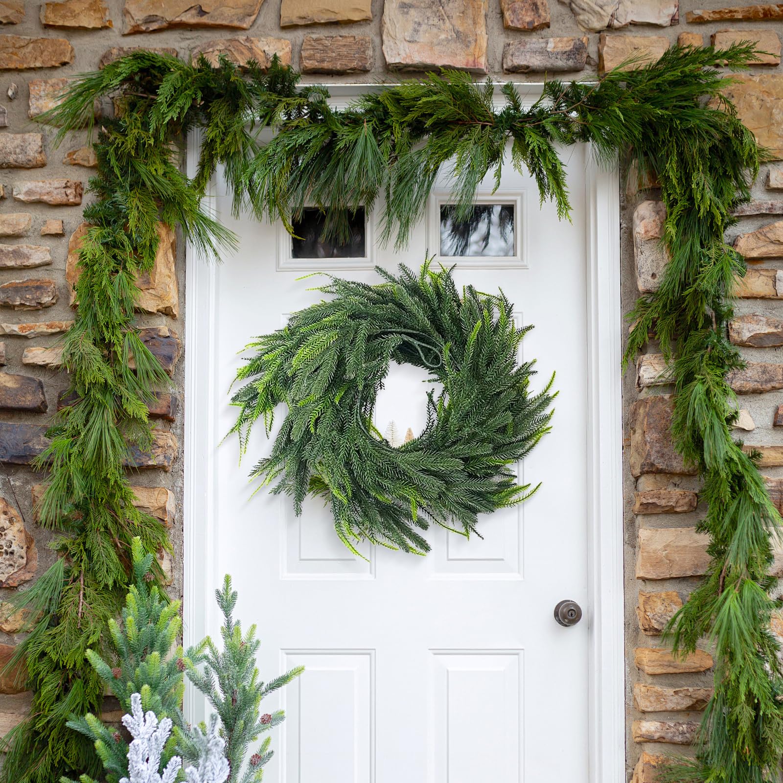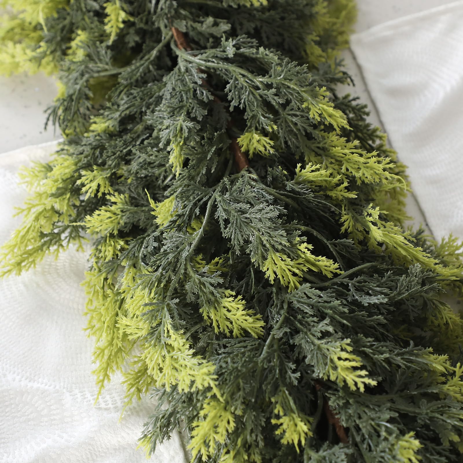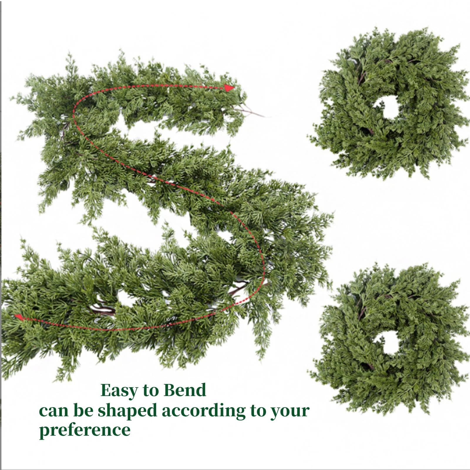 Hol dir den gemütlichen Weihnachtsflair mit dieser naturgetreuen Zedernholz-Girlande! Mit satten 1,8 m Länge lässt sie sich super um Geländer schlingen, über den Kamin hängen oder an Türen und Fenstern drapieren. Die Girlande ist schön dick und flexibel – die verborgenen Drahtstrukturen halten die Form, aber du kannst sie trotzdem easy biegen und anpassen. Das grüne, realistische Design passt perfekt in jede Weihnachtsdekoration. Ob solo oder mit Lichtern, Bändern und Kugeln kombiniert: Sie schafft sofort ne warme, einladende Atmosphäre. Aus weichem Gummi und PE gefertigt, ist sie auch für draußen geeignet. Einfach dekorieren und den Zauber der Feiertage genießen – dein Zuhause wird zum Highlight!