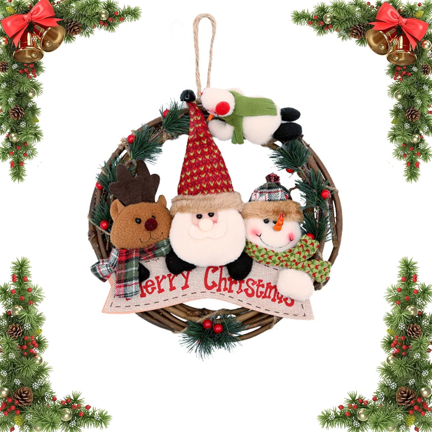 • Weihnachtskranz Mit Weihnachtsmann - 30cm Weißer Türkranz Für Fenster & Tür