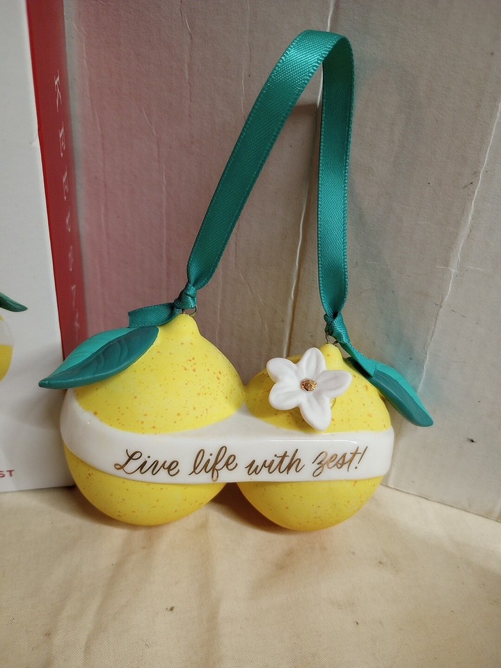 Diese süße Hallmark Weihnachtskugel mit dem motivierenden Spruch 'Live Life with Zest' ist einfach perfekt für alle, die das Leben in vollen Zügen genießen! Das fröhliche Zitronen-Design in leuchtendem Gelb mit goldener Beschriftung bringt Sonnenschein an deinen Weihnachtsbaum. Aus hochwertigem Porzellan, ca. 3,6x2,4x1,75 Zoll groß. Super als Geschenk für Absolventen, Ruheständler, oder einfach für Menschen, die eine besondere Veränderung im Leben meistern. Kommt in einer schönen Geschenkbox - ideal zum Verschenken oder für die eigene Sammlung. Von Hallmark, der Marke für besondere Erinnerungsstücke. Hänge sie an deinen Baum und lass dich jeden Tag daran erinnern, das Leben zu genießen!