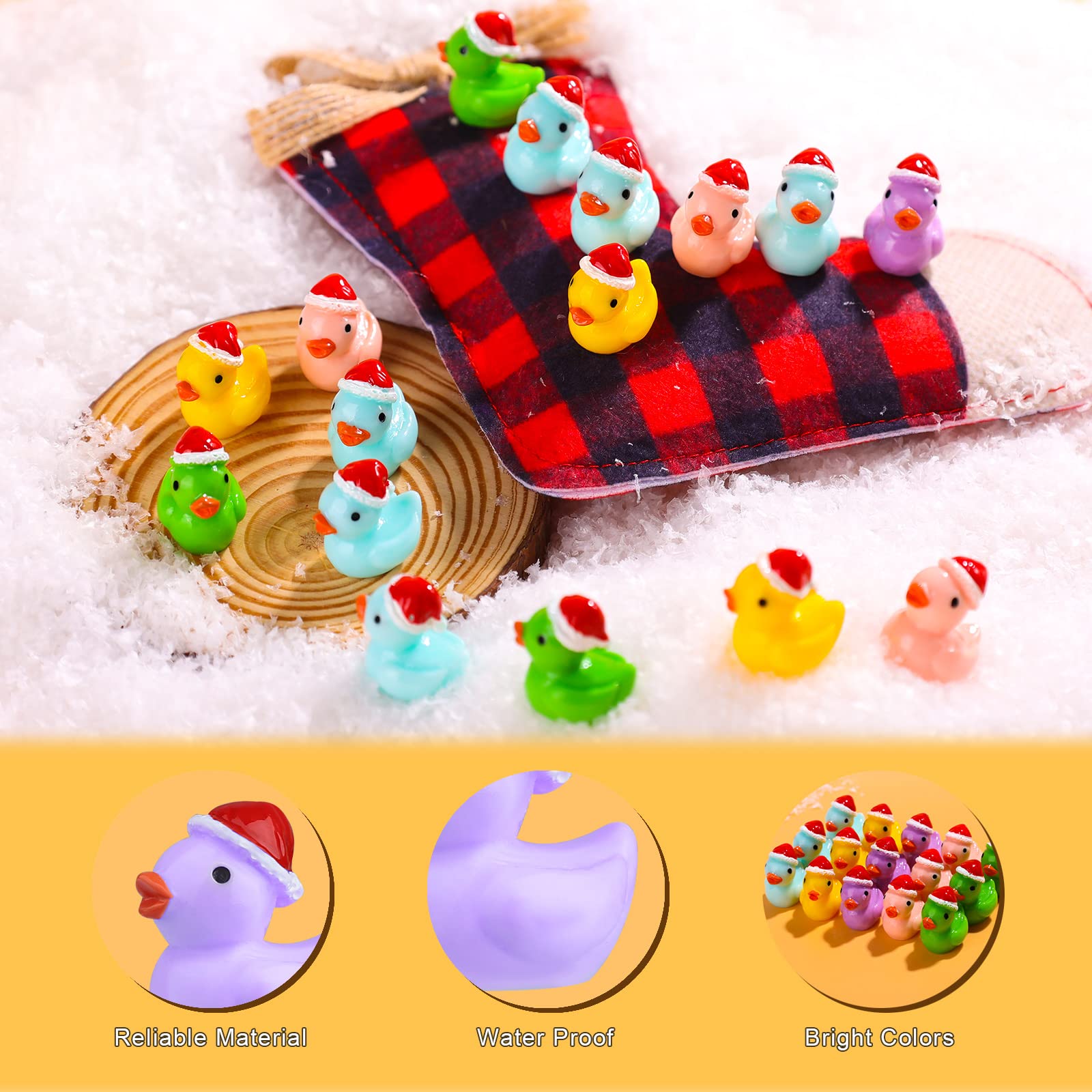 60 Mini Enten Mit Weihnachtsmützen - Harz Figuren Für Deko