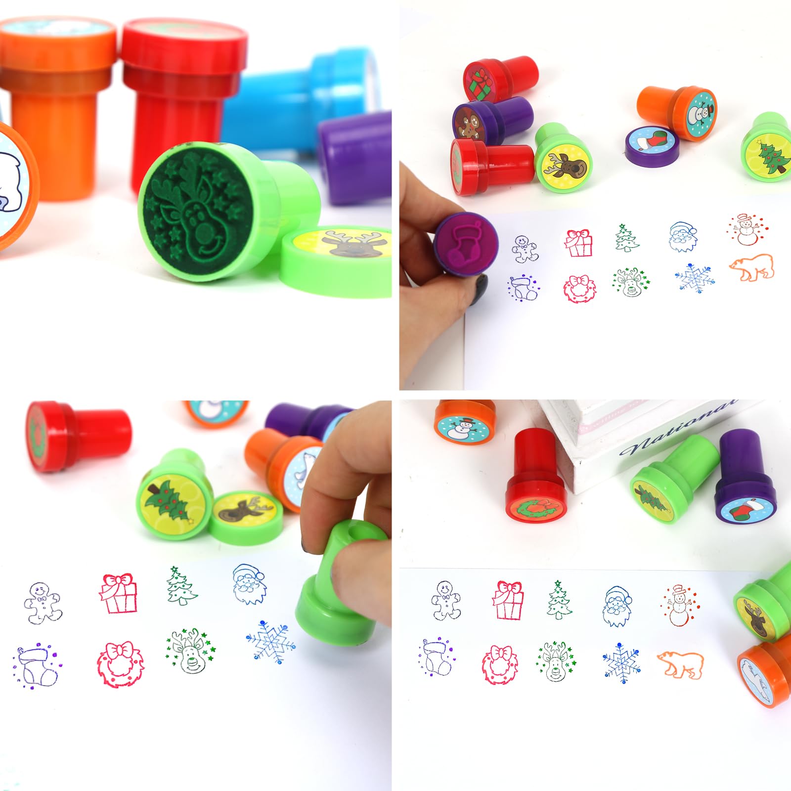 Weihnachtlicher Bastelspaß für die ganze Familie! Dieses 10-teilige Stempel-Set begeistert Kinder ab 2 Jahren mit niedlichen Weihnachtsmotiven wie Weihnachtsmännern, Schneemännern und Weihnachtsbäumen. Jeder Stempel hat 2,5cm Durchmesser und 3,5cm Höhe - perfekt für kleine Hände. Mit umweltfreundlicher, kindersicherer Tinte. Ideal für Weihnachtstüten, Grußkarten, Scrapbooking oder Partygeschenke. Fördert Kreativität, Feinmotorik und kognitive Fähigkeiten. Die Motive auf den Deckeln sind leicht erkennbar. Ein wunderbares Geschenk für die Weihnachtszeit, das lange Freude bereitet!