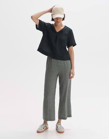 Total angesagte Culotte für den modernen Look! Die OPUS Misha Crepe Hose überzeugt mit ihrem fließenden Schnitt und dem verkürzten Bein - super stylish und mega bequem. Die High-Waist Passform sitzt perfekt an der Taille, während der weite, gerade Beinverlauf für maximale Bewegungsfreiheit sorgt. Hergestellt aus hochwertigem Viskosekrepp mit Recycled Claim Standard (RCS) - 100. Das Material fühlt sich nicht nur luxuriös an, sondern ist auch nachhaltig! Perfekt fürs Büro, Date-Night oder einfach für den Alltag. Kombinierbar mit Sneakern, Sandalen oder Stiefeletten - dieser zeitlose Style passt zu allem. OPUS steht für Casual Chic mit femininem Touch und nachhaltiger Produktion. Eine Hose, die du immer wieder anziehen wirst und die sich bei jedem Tragen besser anfühlt! Ein Must-have für jede modebewusste Frau, die Wert auf Komfort und Stil legt.