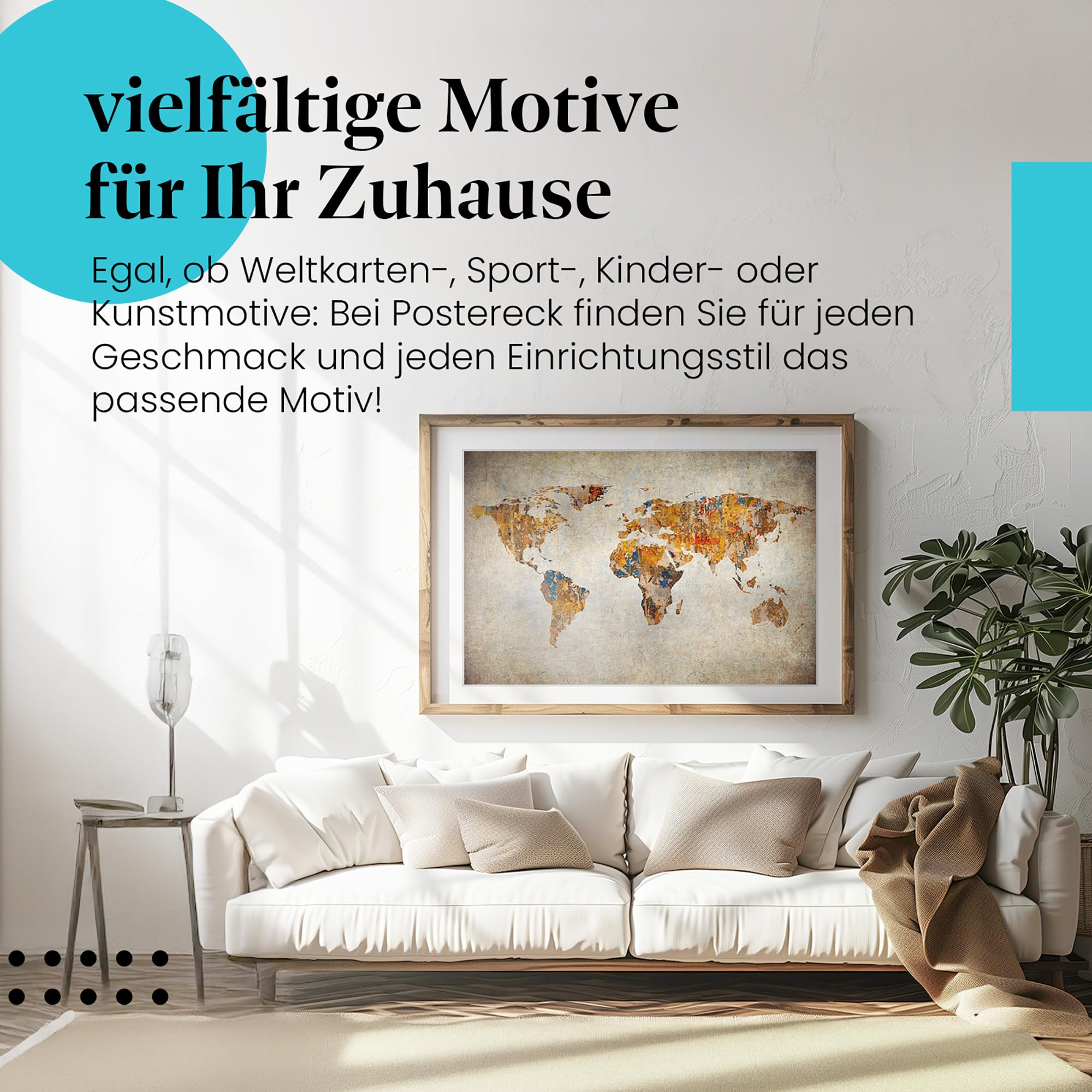 Boah, diese Weltkarte von Postereck ist ja mal der absolute Hingucker für deine Wand! Im vintage Stil mit allen Hauptstädten der Länder - einfach mega detailliert. Mit DIN A3 Maßen (29,7x42cm) ist sie perfekt fürs Klassenzimmer, Büro oder dein Wohnzimmer.\\n\\nHergestellt in Deutschland in einer kleinen Manufaktur in Bayern - da steckt richtig Liebe drin! Das 260g/m² schwere Fotopapier ist seidig glänzend und FSC-zertifiziert. Die Marken-Pigmenttinte sorgt für knallige Farben, die auch bei Sonneneinstrahlung nicht verblassen.\\n\\nEinfach aus der Versandröhre nehmen, aufhängen und staunen - komplett knitterfrei geliefert! Und falls du nen anderen Rahmen hast: Die Jungs schneiden dir das Poster sogar kostenlos zu. Echt praktisch, oder? Perfekt für Lehrer, Schüler oder einfach alle, die die Welt lieben!