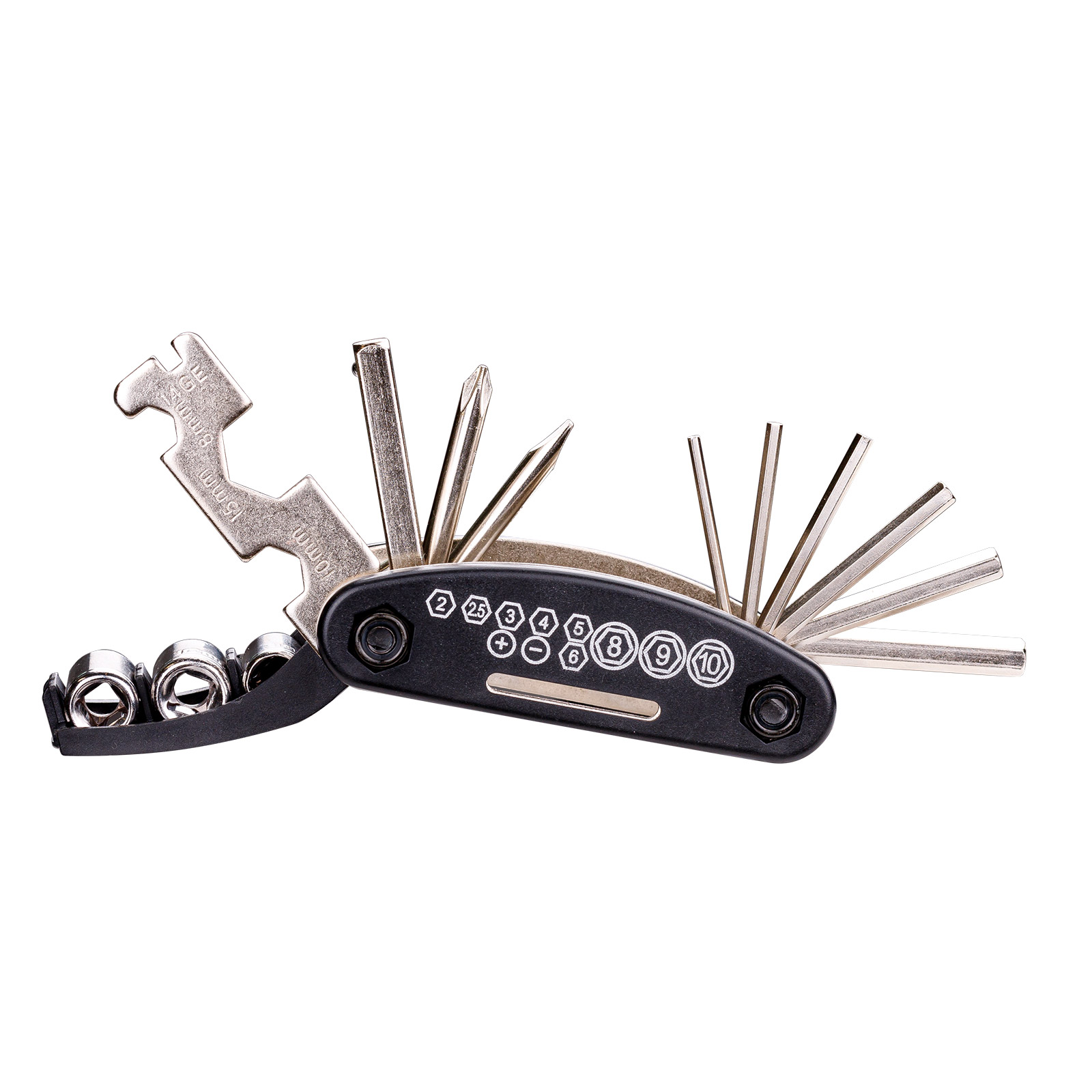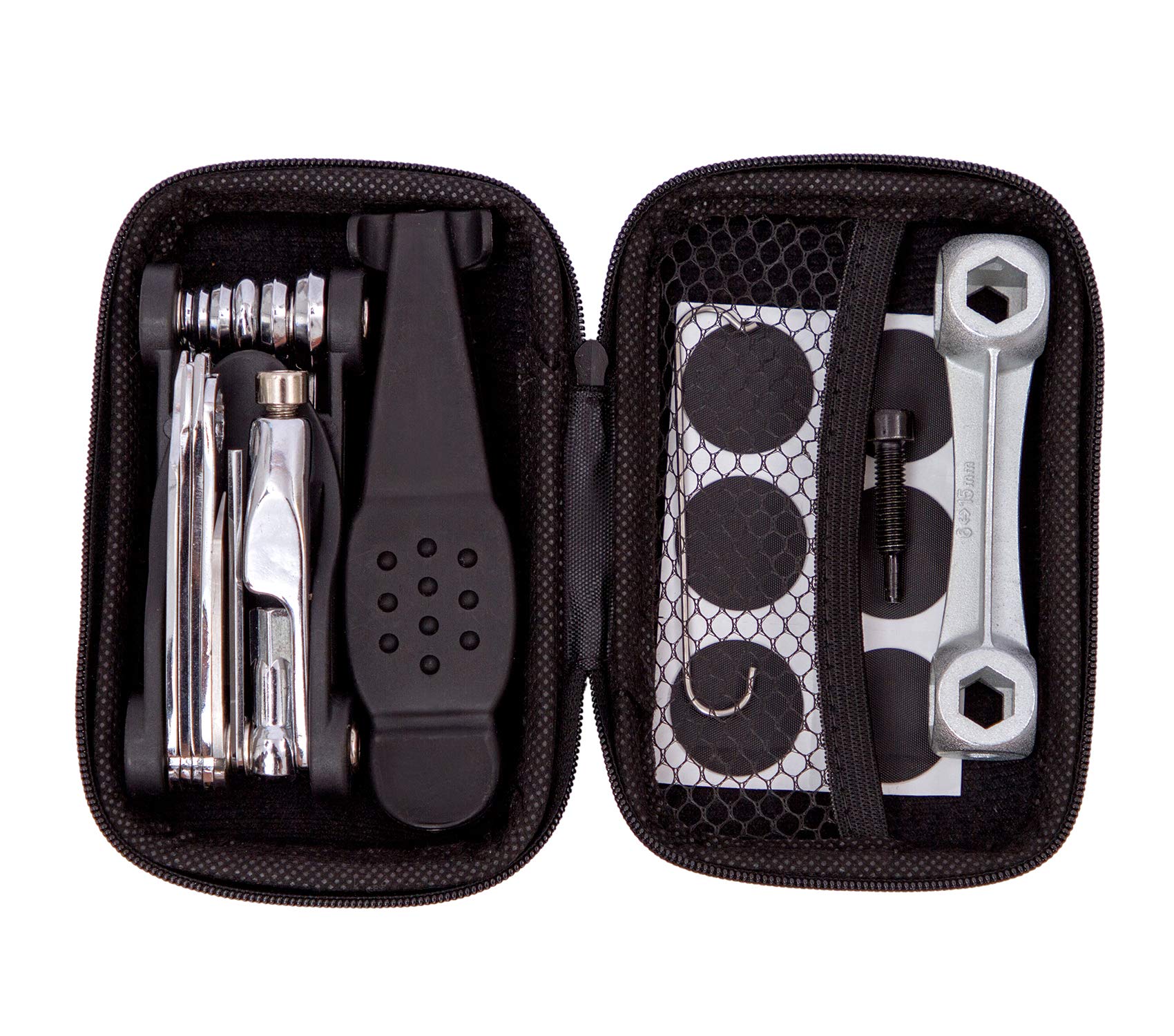 Radfahrer, dieses Werkzeug-Set ist euer bester Freund auf Tour! Das 17-in-1 Multitool hat alles, was ihr für unterwegs braucht: Inbusschlüssel in 2, 2.5, 3, 4, 5, 6, 8mm, Rohrschlüssel 8,9,10, Flach- und Kreuzschlitz-Schraubendreher, Flaschenöffner, Notfallmesser und Kettenwerkzeug. Aus hochfestem Kohlenstoffstahl gefertigt - robust und langlebig. Das Kettenwerkzeug mit Kettennietstift macht das Reparieren der Kette zum Kinderspiel. Alles sicher verstaut in der praktischen Tragetasche - kompakt, leicht und immer griffbereit. Perfekt für Notfall-Reparaturen unterwegs, ob auf der Straße oder im Gelände. Kein lästiges Suchen mehr nach dem richtigen Werkzeug - alles in einem! Auch super als Ersatz für die heimische Werkstatt. Mit 6 Monaten Garantie - da seid ihr auf der sicheren Seite. Einfach in die Satteltasche packen und beruhigt losradeln!
