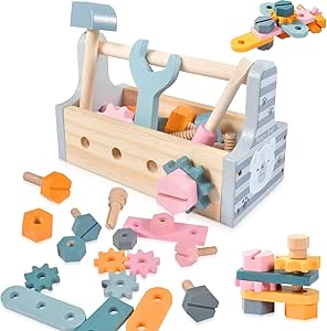 Achtung, kleine Handwerker und Feuerwehrleute! Dieser mega Werkzeugkoffer im coolen Feuerwehrauto-Design begeistert jeden kleinen Bastler. Mit 47 Teilen aus hochwertigem Massivholz hat dein Kind alles, was es für erste Handwerker-Projekte braucht: Bohrmaschine, Hammer, Säge, Schraubenschlüssel und viele bunte Bauteile. Nach Montessori-Prinzipien entwickelt, fördert das Spielen die Feinmotorik, das logische Denken und die Kreativität. Die glatten Kanten und ungiftigen Farben auf Wasserbasis machen das Spielzeug absolut kindersicher. Ob ein kleiner Welpe, ein cooles Flugzeug oder ein schnelles Motorrad - der Fantasie sind keine Grenzen gesetzt! Das Feuerwehrauto hat ein praktisches Staufach und mit der Tragetasche wird das Aufräumen zum Spaß. Perfekt als Geschenk für Jungen und Mädchen ab 3 Jahren - ob zu Geburtstag, Weihnachten oder einfach so. Dein Kind wird stundenlang beschäftigt sein und dabei ganz nebenbei wichtige Fähigkeiten lernen!