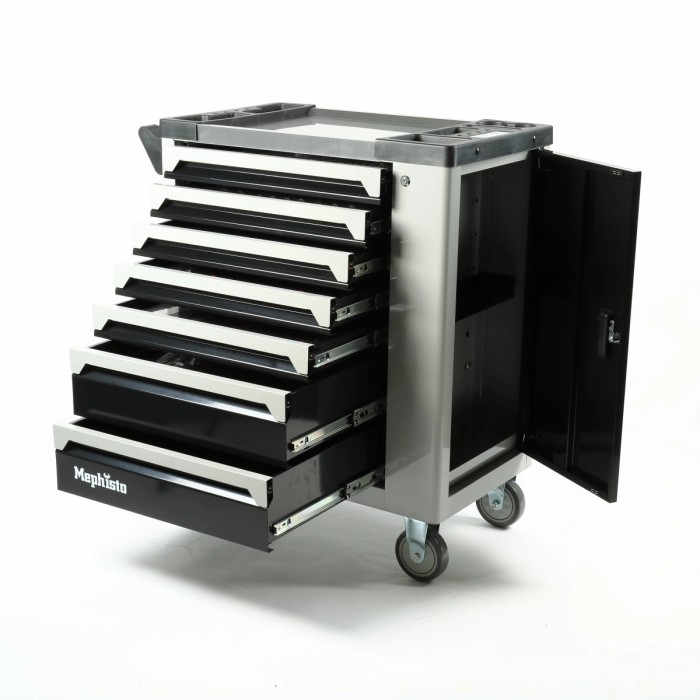 Alter, das ist ja der Hammer! Der Stix UltimatePro ist nicht irgendein Werkzeugwagen - der kommt gleich komplett mit 451 Profi-Werkzeugen. Stell dir vor: 12 Schubladen, alle mit Soft-Close-Funktion, die schließen ganz sanft. Die Arbeitsplatte ist aus Edelstahl, super pflegeleicht und kratzfest. Die Seitenwände haben Lochungen, da kannst du noch extra Haken anbringen. Mit den vier Rollen (mit Bremse!) schiebst du den Wagen easy durch die Werkstatt. Und wenn du weggehst, schließt du einfach das Zentralschloss zu - alle Schubladen sind gesichert. Das Werkzeugset hat echt alles: Stecknüsse, Ratschen, Schraubendreher, Zangen, Hammer... alles aus Chrom-Vanadium-Stahl, also richtig robust. Die Schubladen haben Anti-Rutsch-Matten, damit nichts verrutscht. Ob in der Kfz-Werkstatt, Industrie oder daheim in der Garage - damit bist du perfekt ausgestattet. Der Wagen ist stabil aus Stahl, die Schubladen laufen auf Kugellagern... einfach Profi-Qualität!