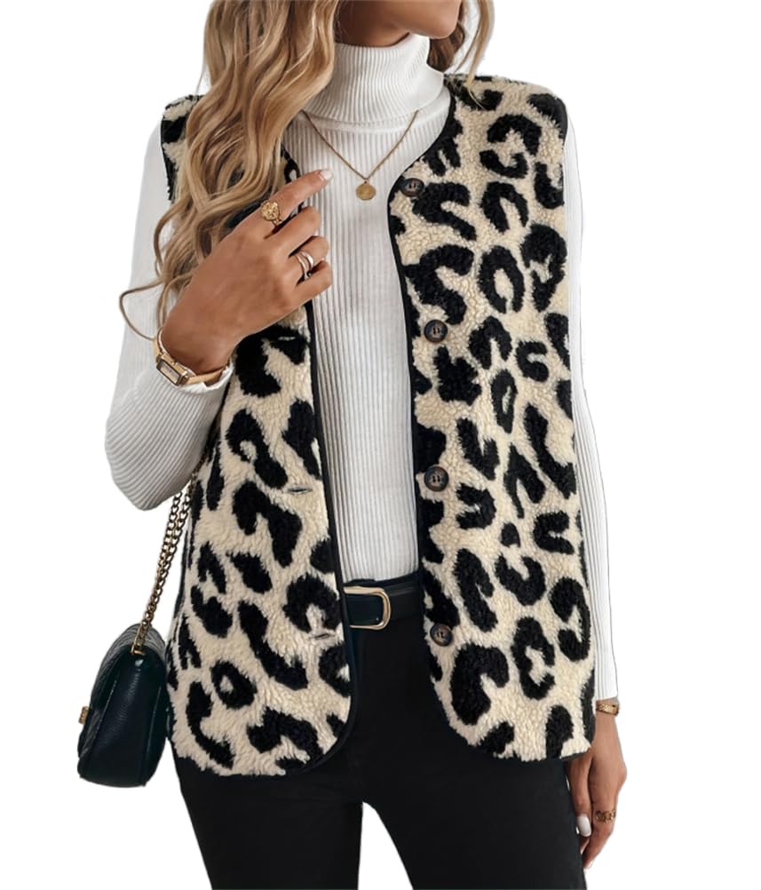 So kuschelig warm! Diese Teddy Weste mit Leopardenmuster ist einfach perfekt für die Übergangszeit. Stell dir vor: Ein weiches Fleece-Material, das sich anfühlt wie eine sanfte Umarmung - genau das, was man an kühleren Tagen braucht! Ohne Ärmel super vielseitig kombinierbar: Über T-Shirts, Pullis oder sogar Kapuzenpullover. Das Leopardenprint ist total im Trend, aber nicht zu aufdringlich - passt zu Jeans, Leggings oder sogar Röcken. Die Weste ist schön leicht, also kein klobiges Ding was dich einpackt wie ein Michelin-Männchen. Perfekt für den Herbst, wenn's morgens noch frisch ist, oder im Winter drinnen, wenn die Heizung mal nicht ganz reicht. Ob im Büro, beim Einkaufen oder einfach nur auf dem Sofa - diese Weste sieht nicht nur gut aus, sondern macht auch richtig gemütlich! In verschiedenen Größen verfügbar, also für jede Figur was dabei. Einfach anziehen und wohlfühlen - mehr braucht's manchmal nicht für einen guten Tag!