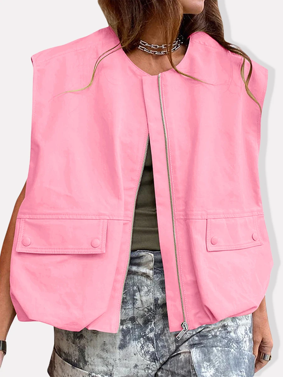 Coole Cargo-Weste für den Sommer! Diese ärmellose Damenweste im oversized Look ist dein neuer Liebling für warme Tage und kühlere Abende.