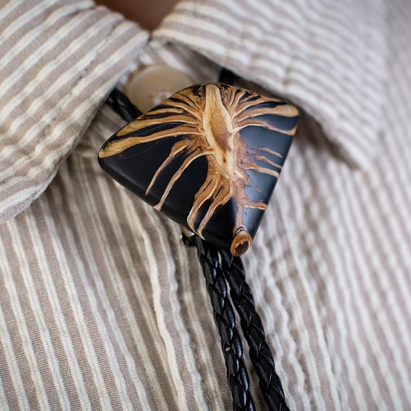 Echte Western-Attitüde mit dieser coolen Bolero-Krawatte! Aus schwarzem geflochtenem Leder mit silbernen Legierungs-Teilen. Die schwarzen Achat-Steine sehen mega edel aus - 2,5x2cm und 3x2cm groß. Mit verschiebbarer Klammer, lässt sich perfekt anpassen. Total handgefertigt, richtige Qualität. Perfekt für Western-Partys, Tanzen oder wenn du einfach mal was anderes tragen willst. Macht jedes Outfit sofort zum Hingucker. Einfach umhängen und du bist der coolste Cowboy in der Stadt!
